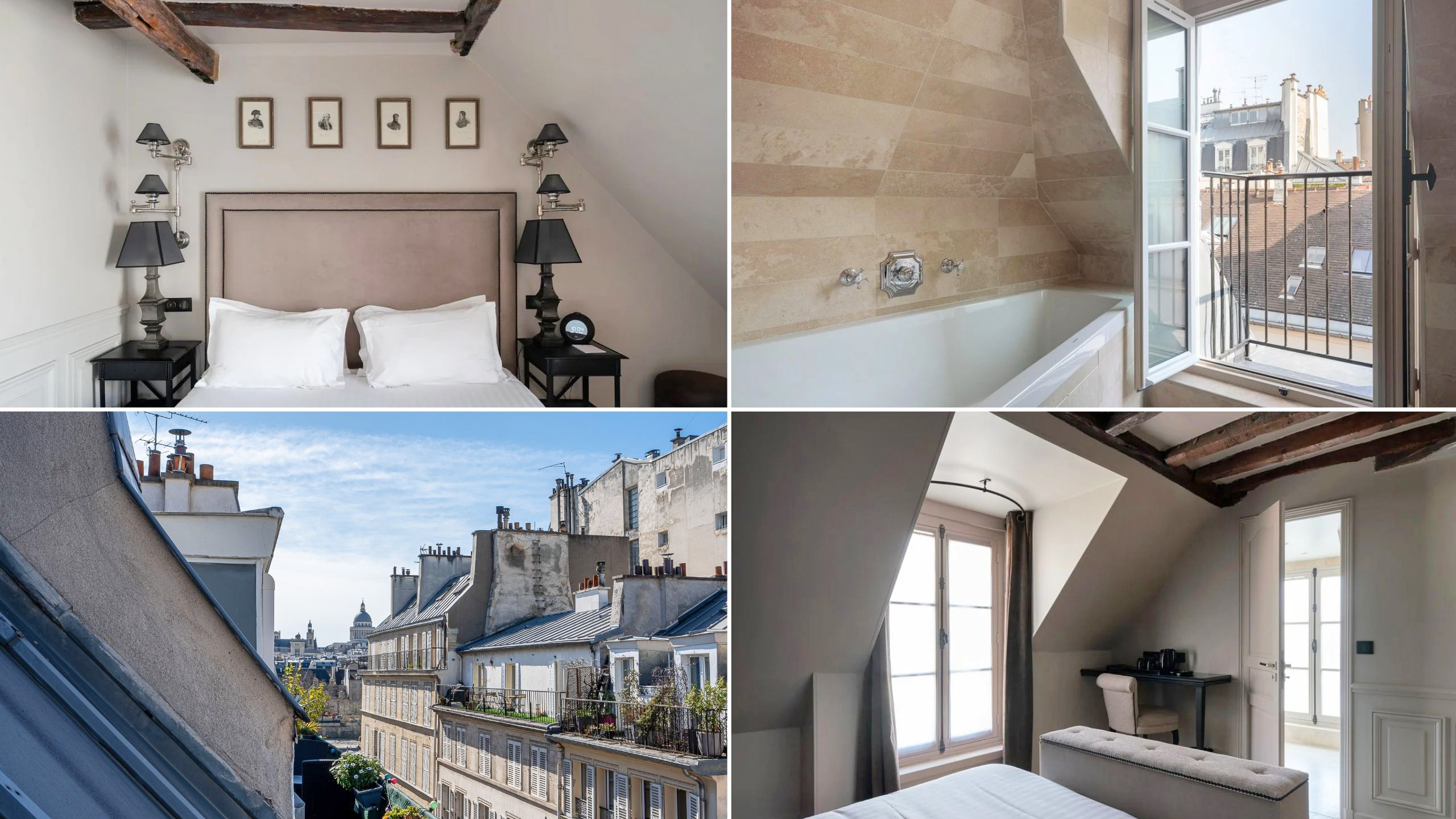 Ja, einige Zimmer bieten einen eigenen Balkon mit Blick auf die Dächer des alten Paris.