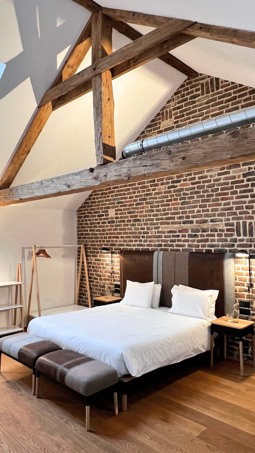 La piscina del hotel se encuentra en un antiguo granero lleno de encanto. Si sois los únicos en disfrutarla, es una experiencia mágica y única en Bélgica. Se calienta a 29 °C sin emisiones de carbono gracias a una bomba de calor alimentada por paneles solares y un sistema geotérmico.