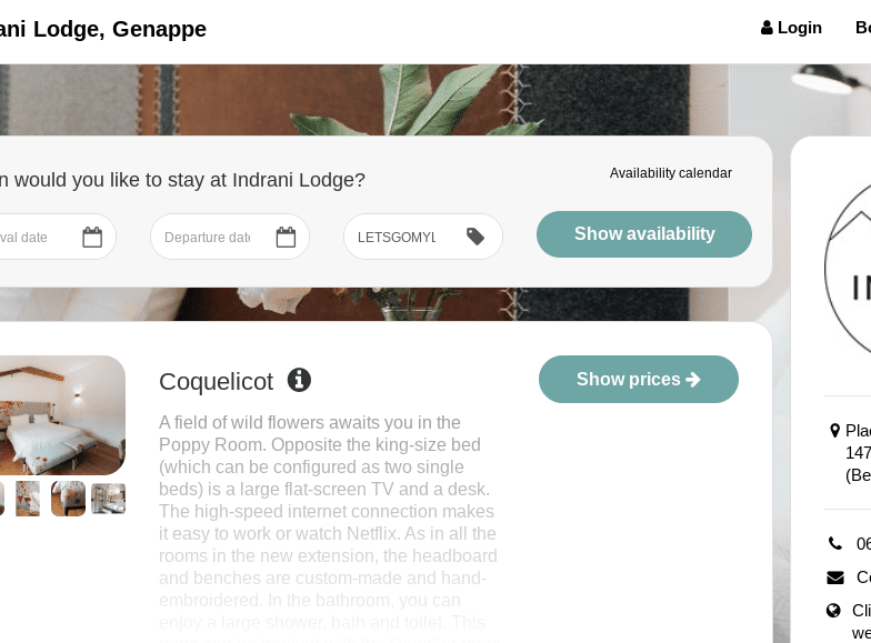 El Indrani Lodge se encuentra en Genappe, en Brabante Valón, entre Bruselas, Charleroi y Namur. En los alrededores hay numerosas iglesias y castillos que descubrir.
