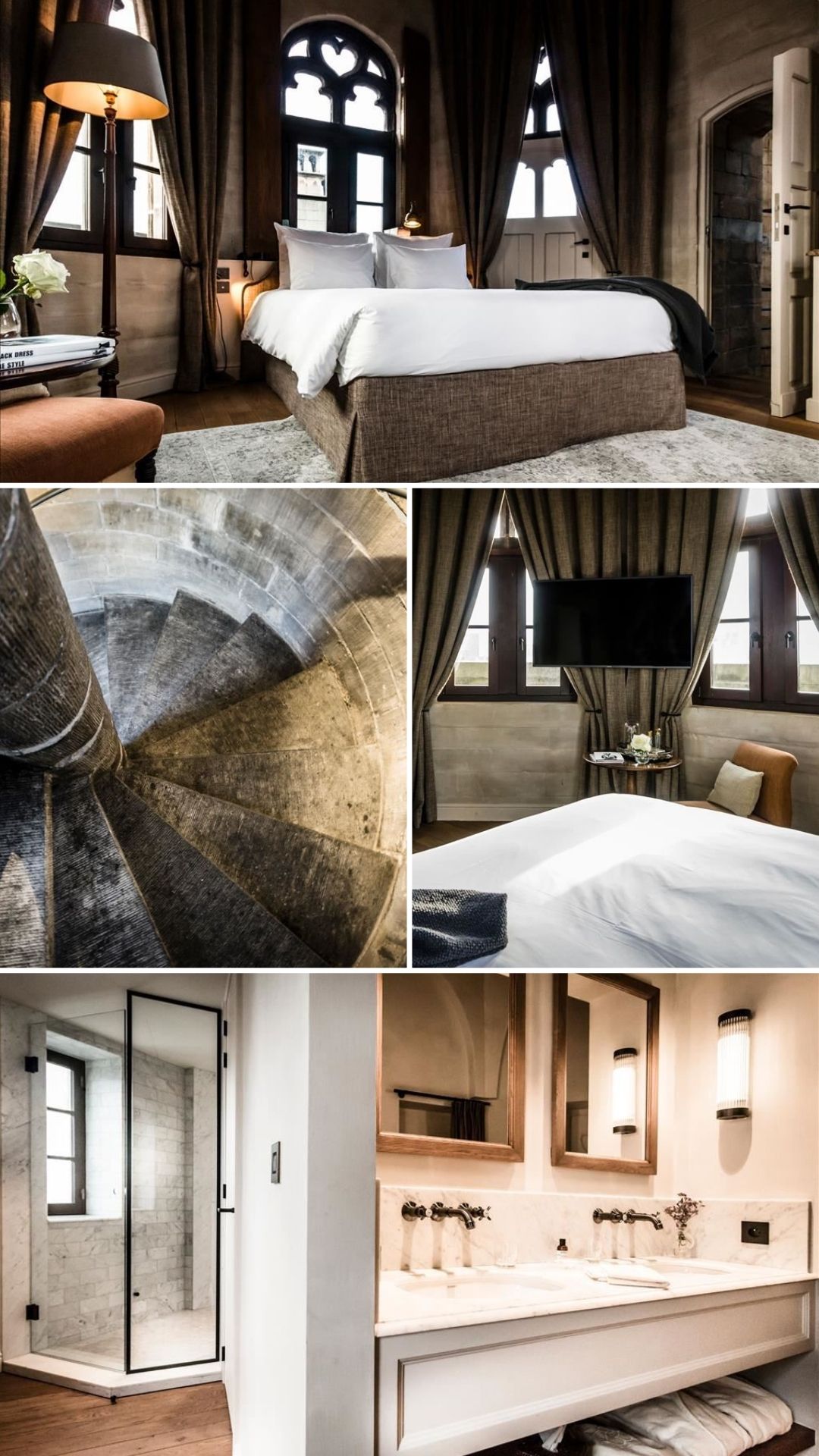 Chacune des 38 chambres est unique et raconte sa propre histoire. En fonction de votre choix, vous disposez des équipements suivants : hauts plafonds, grandes fenêtres, lumière indirecte subtile, meubles anciens, terrasse privée, literie king size, salle de bain privé en marbre blanc, draps en coton belge, rideaux en laine et vue imprenable sur Gand.