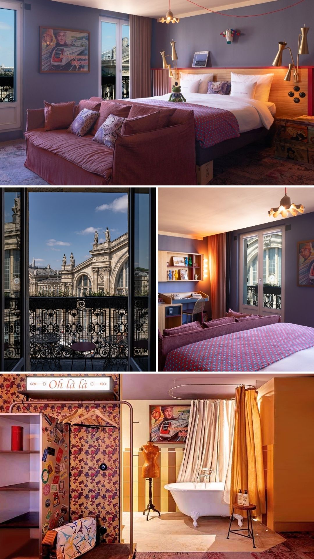 7 • Extra Large Balcony • Vue Gare du Nord • Balcon • Baignoire près du lit • Déco rétro • Photo • 🛁