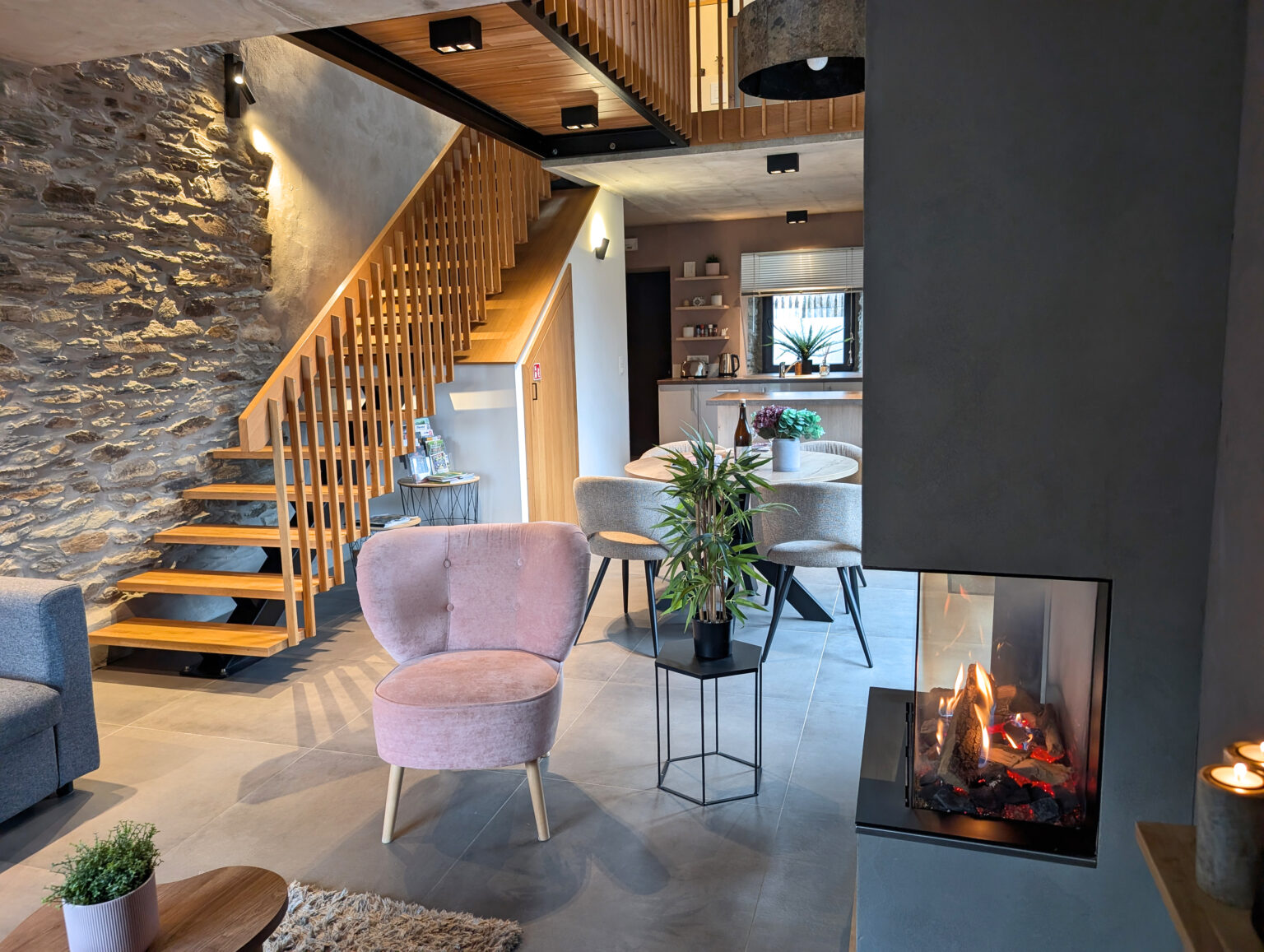 Selon la suite choisie, vous disposez des équipements suivants : jacuzzi extérieur sur la terrasse, sauna dans la chambre ou bien sur la terrasse, belles poutres en bois, murs en pierre, jardin privé, cheminée dans le salon, cuisine ouverte super équipée, chambre ouverte, grand lit double avec tête de lit matelassé et salle de bain avec grande douche italienne. La propreté est impeccable.