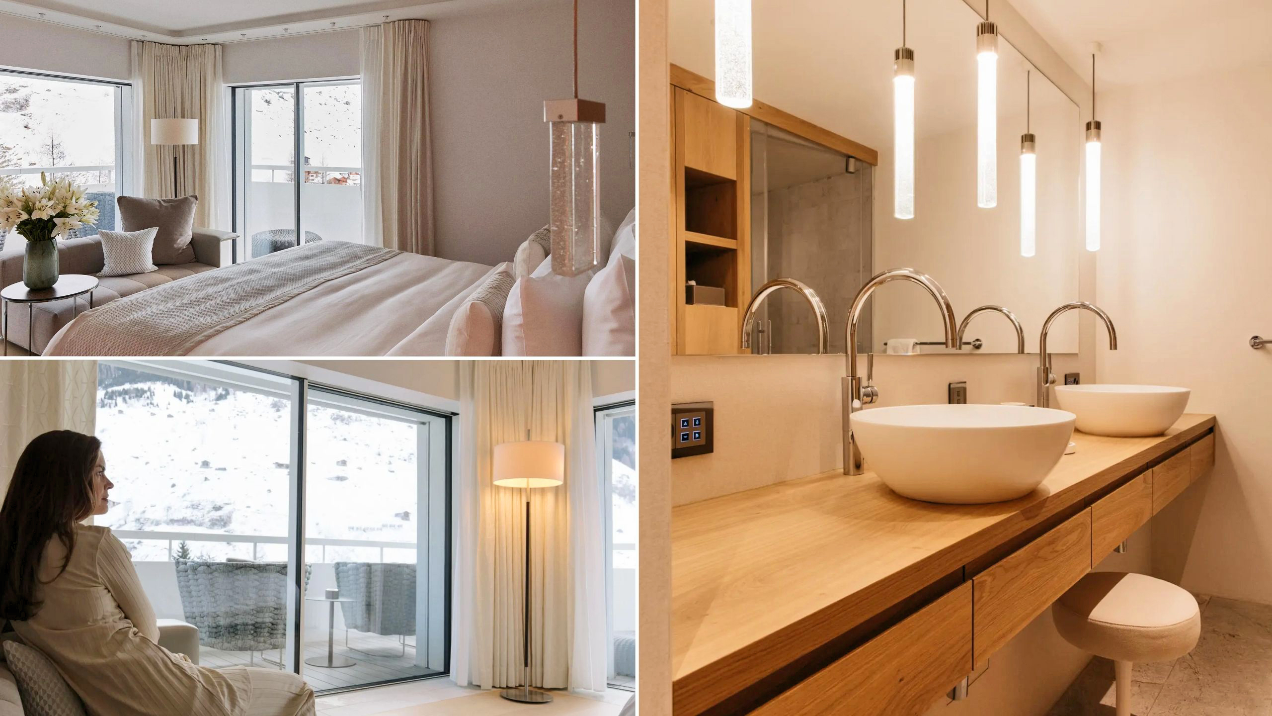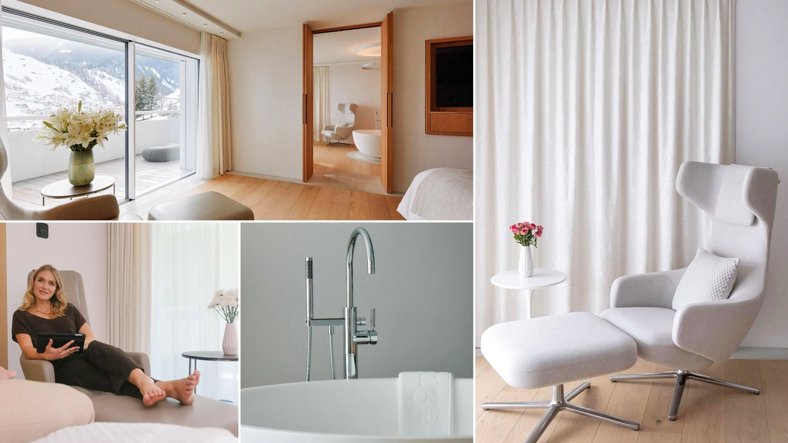 Il y a 22 chambres et suites au total dans l'hôtel. Celles-ci sont sublimes avec une multitude de petites attentions. Aucun bruit et aucune lumière extérieure durant la nuit. Selon votre choix, vous disposez des équipements suivants : produits d'accueil de chez Espa, terrasse privée, literie king size, vue fantastique sur la montagne, salle de bains privée avec grande baignoire et douche, minibar gratuit, parfaite insonorisation et rideaux occultants.