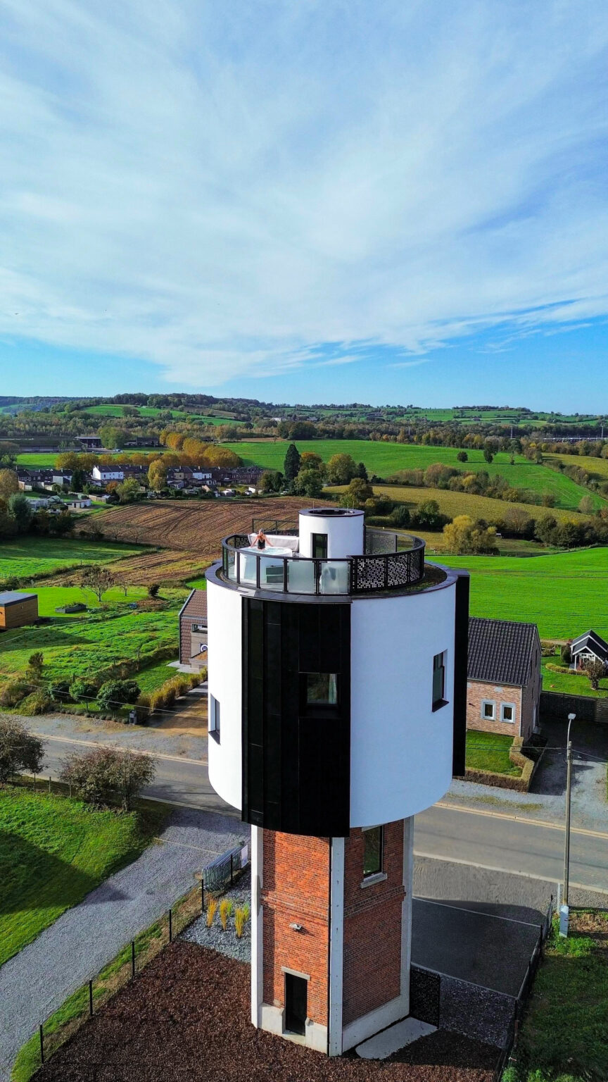 Frédéric et Aléna, les propriétaires, ont grandi dans la région, au cœur du Pays de Herve. Enfants, ils passaient déjà souvent devant le château d’eau. Plus tard, ils ont choisi de lui offrir une nouvelle vie. Pari relevé haut la main !