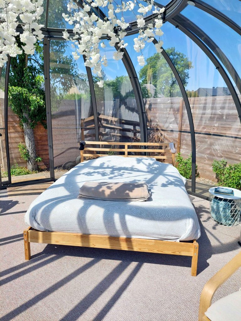 S'il fait très chaud, sachez que le soleil ne donne plus sur la bulle dès 18-19h, ce qui vous permet de passer une soirée plus fraîche.