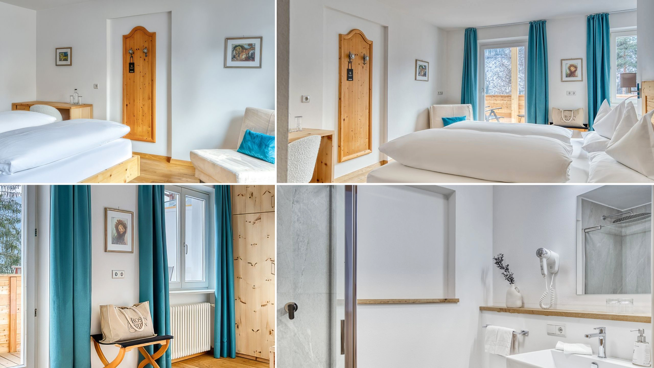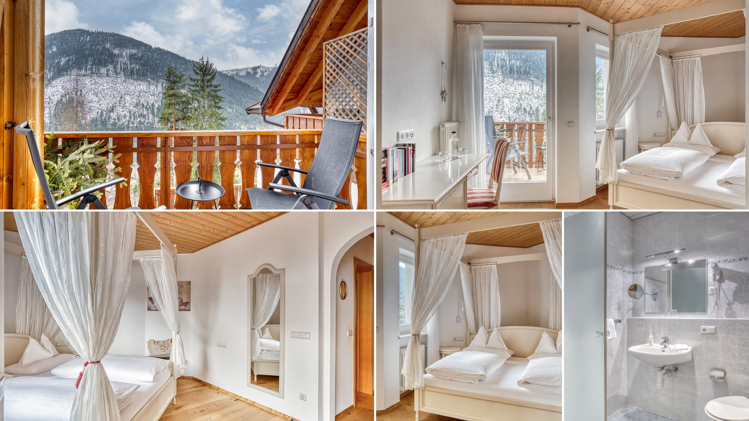 Selon la chambre choisie, vous disposez des équipements suivants : lit double, balcon avec vue sur les montagnes ou le jardin, plancher en bois, meubles en pin, salle de bain avec douche, sèche-cheveux et coffre-fort.