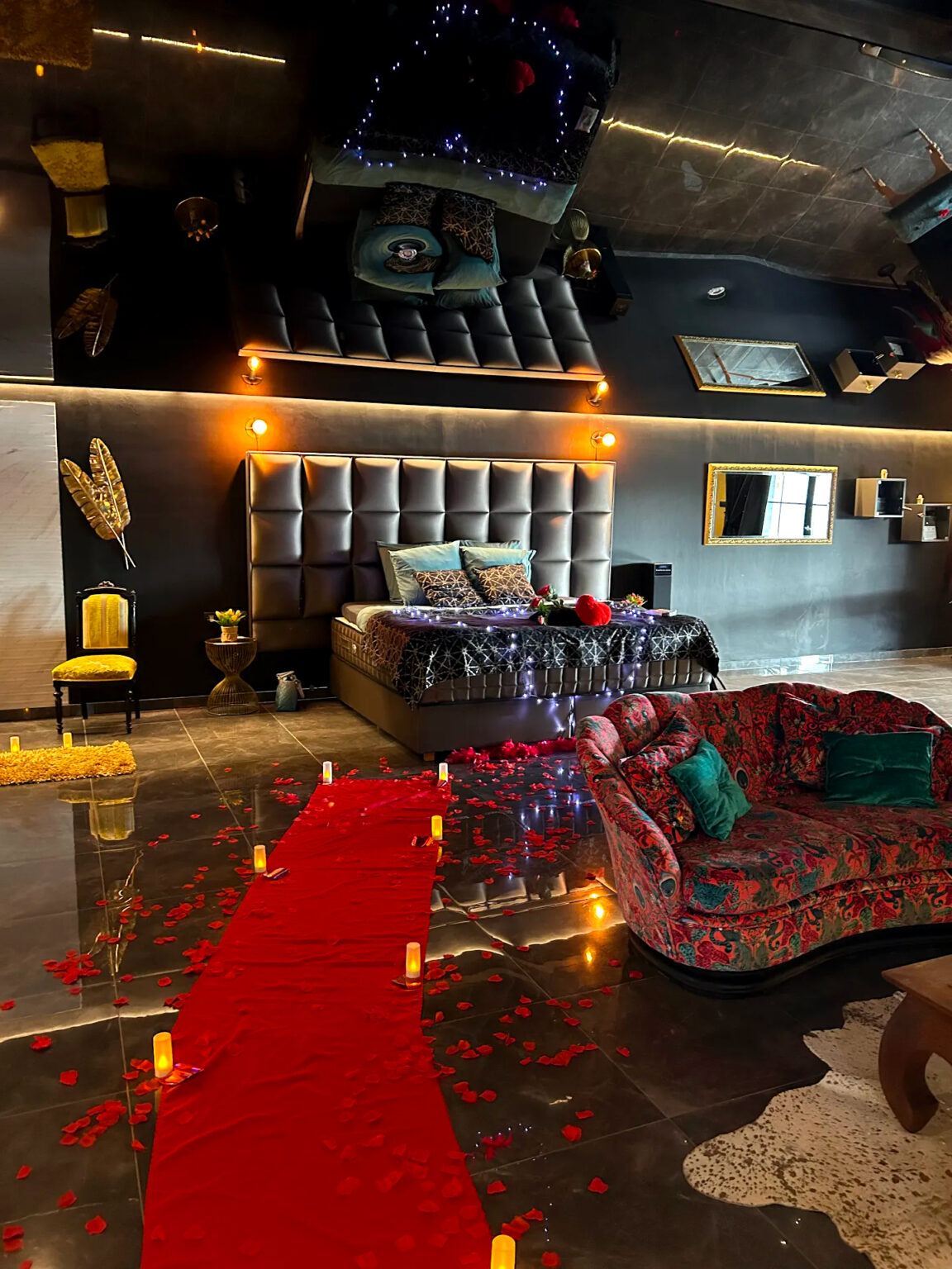 Les suites Black Room sont idéales pour un séjour en amoureux : jacuzzi, saune et même piscine privative, vous y trouverez tout le confort nécessaire. Vous avez même ma possibilité de rendre ce moment durant plus pétillant avec bouteille de bulles et une décoration des plus romantiques.
