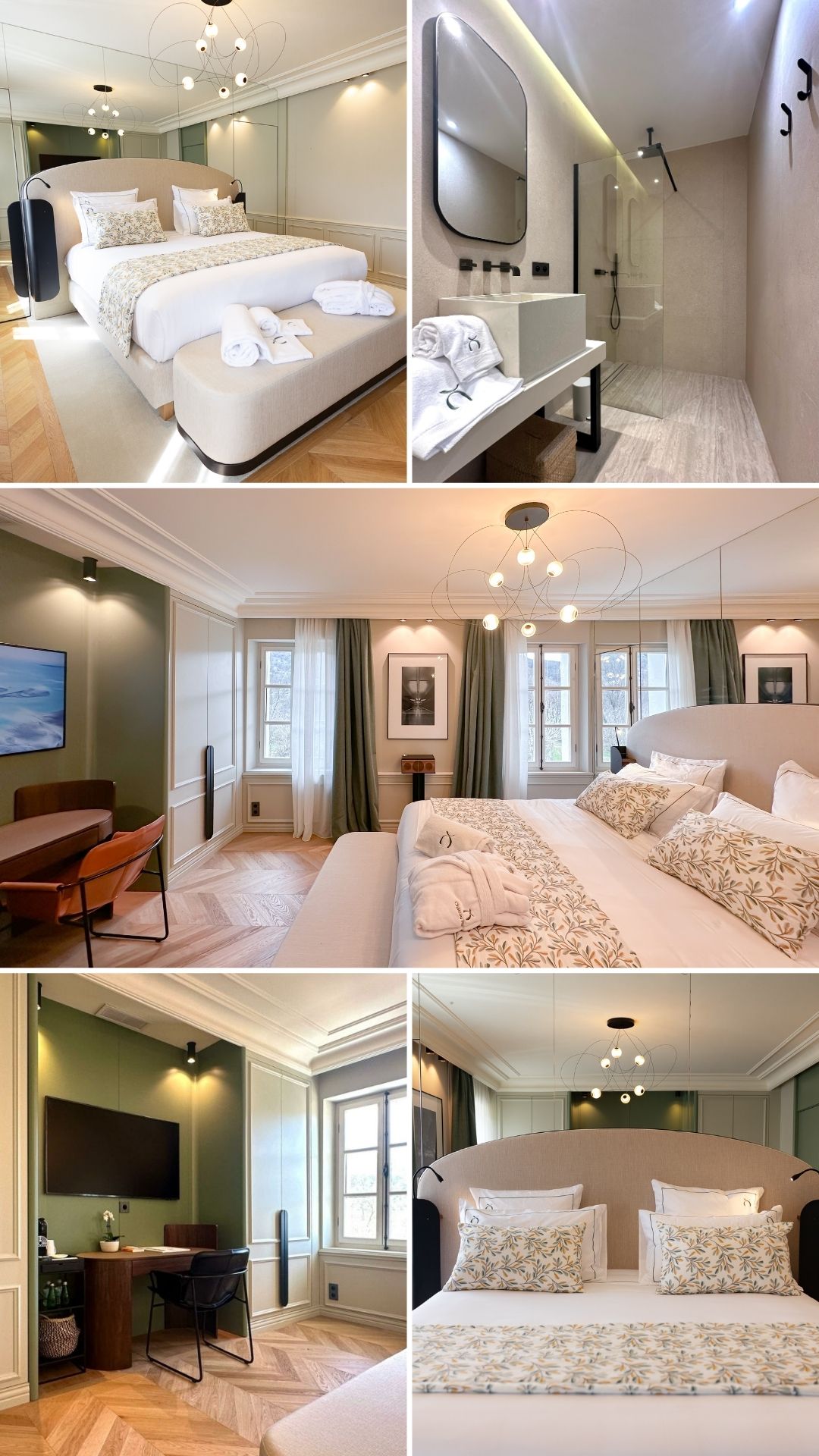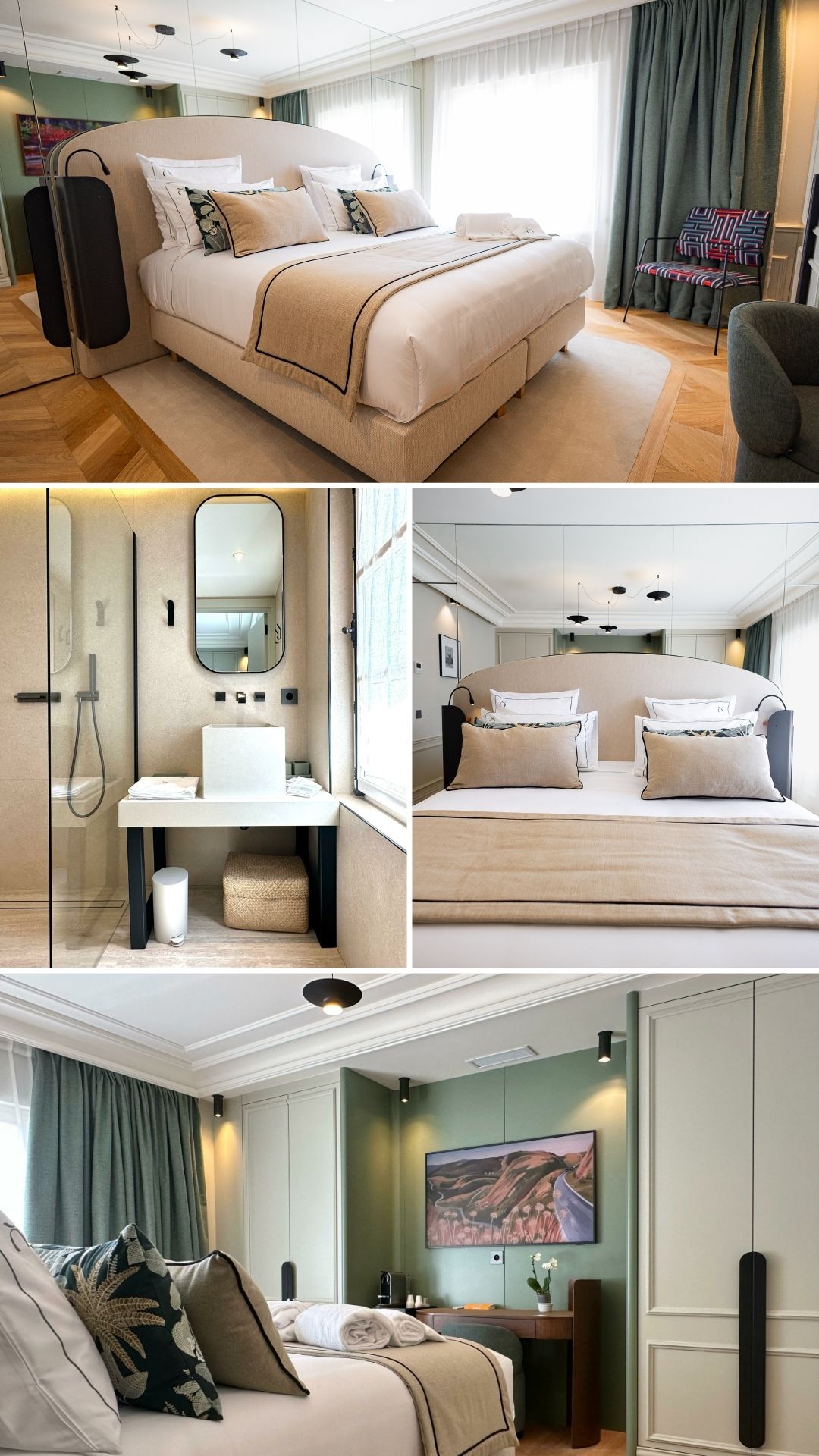 Selon la chambre choisie, vous bénéficiez des équipements suivants : lit king size ou queen size, literie d’exception, draps Garnier-Thiebaut, salle de bain avec baignoire balnéo, baignoire îlot ou douche, peignoir, sèche-cheveux, fer à repasser, climatisation, coffre-fort et wifi.