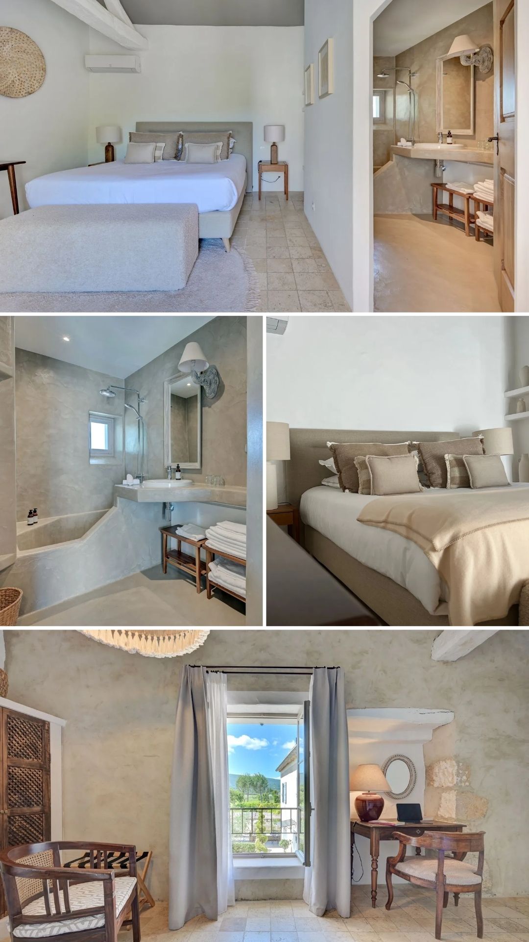 L'atmosphère est authentique, apaisante, naturelle, très travaillée. Selon la chambre, vous disposez notamment des équipements suivants : lit king size, salle de bain privative, machine Nespresso, terrasse privative et linge de lit pris en charge par une blanchisserie professionnelle.