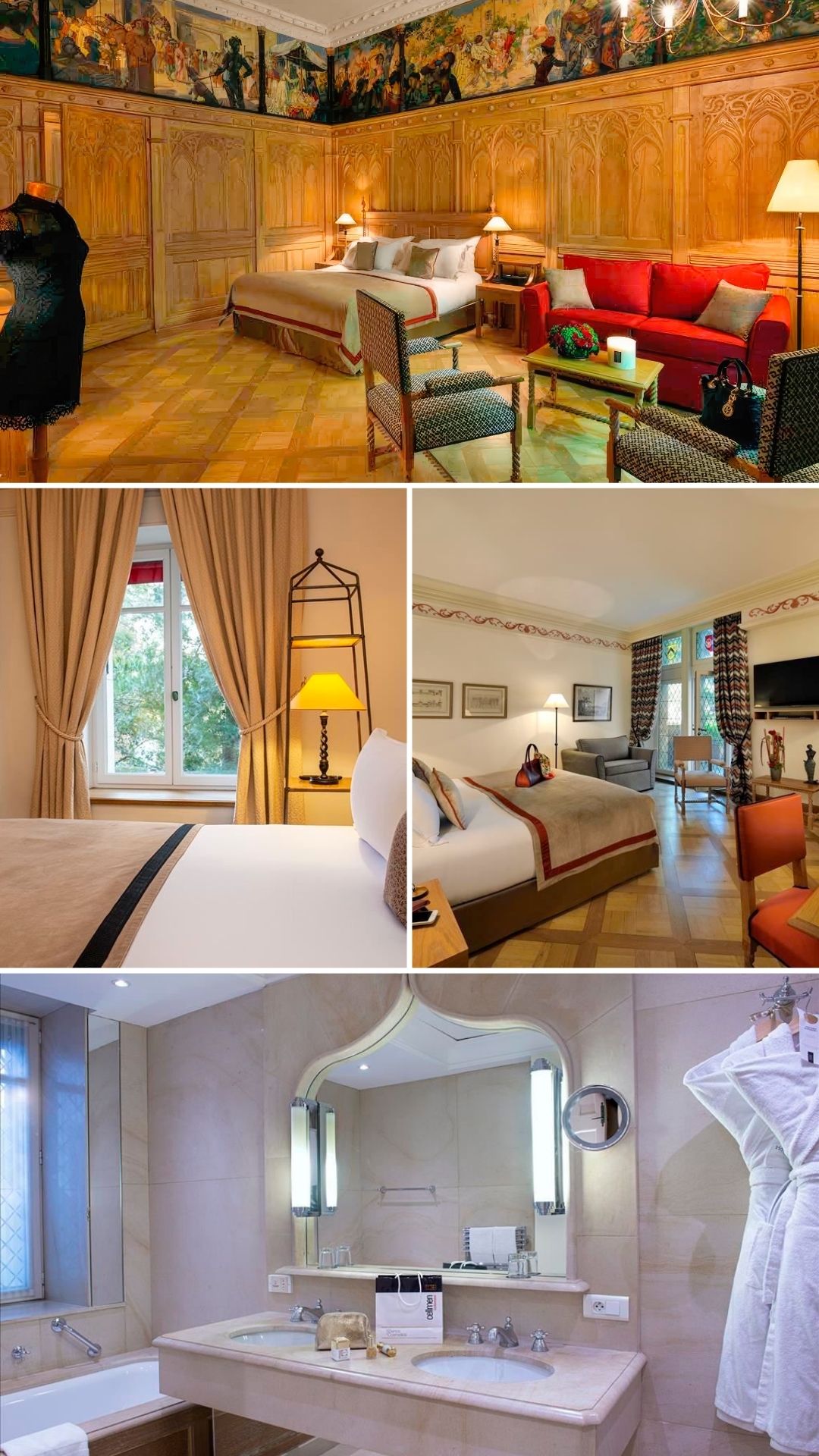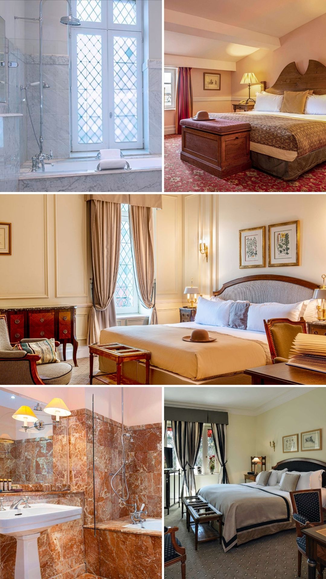 L'hôtel compte 47 chambres et 13 suites, toutes décorées dans un style raffiné entre le néo-gothique et l'art déco des années 20. Panneaux de bois sculpté, ornements en tapisserie et fenêtres avec des vitraux : tout participe à créer une atmosphère chaude et intime.
