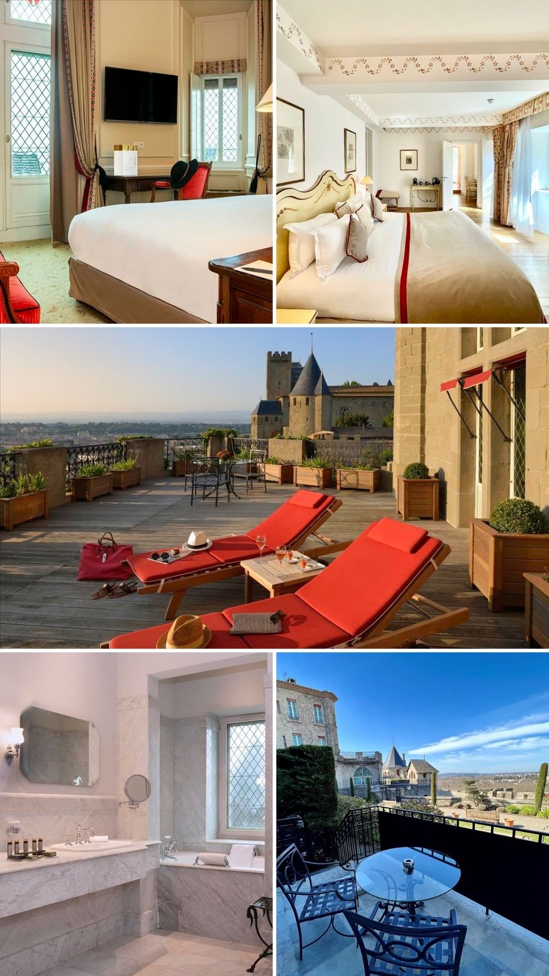 L'hôtel de la Cité & Spa est le seul hôtel 5* situé en plein centre historique de Carcassonne, à l'intérieur des remparts de la ville. Construit à l'emplacement de l'ancien palais épiscopal, il surplombe la ville basse. La vue est magique, unique et majestueuse. Il y a notamment une piscine extérieure chauffée, un restaurant étoilé et un magnifique espace wellness. L'hôtel a été sélectionné par le Guide Michelin.