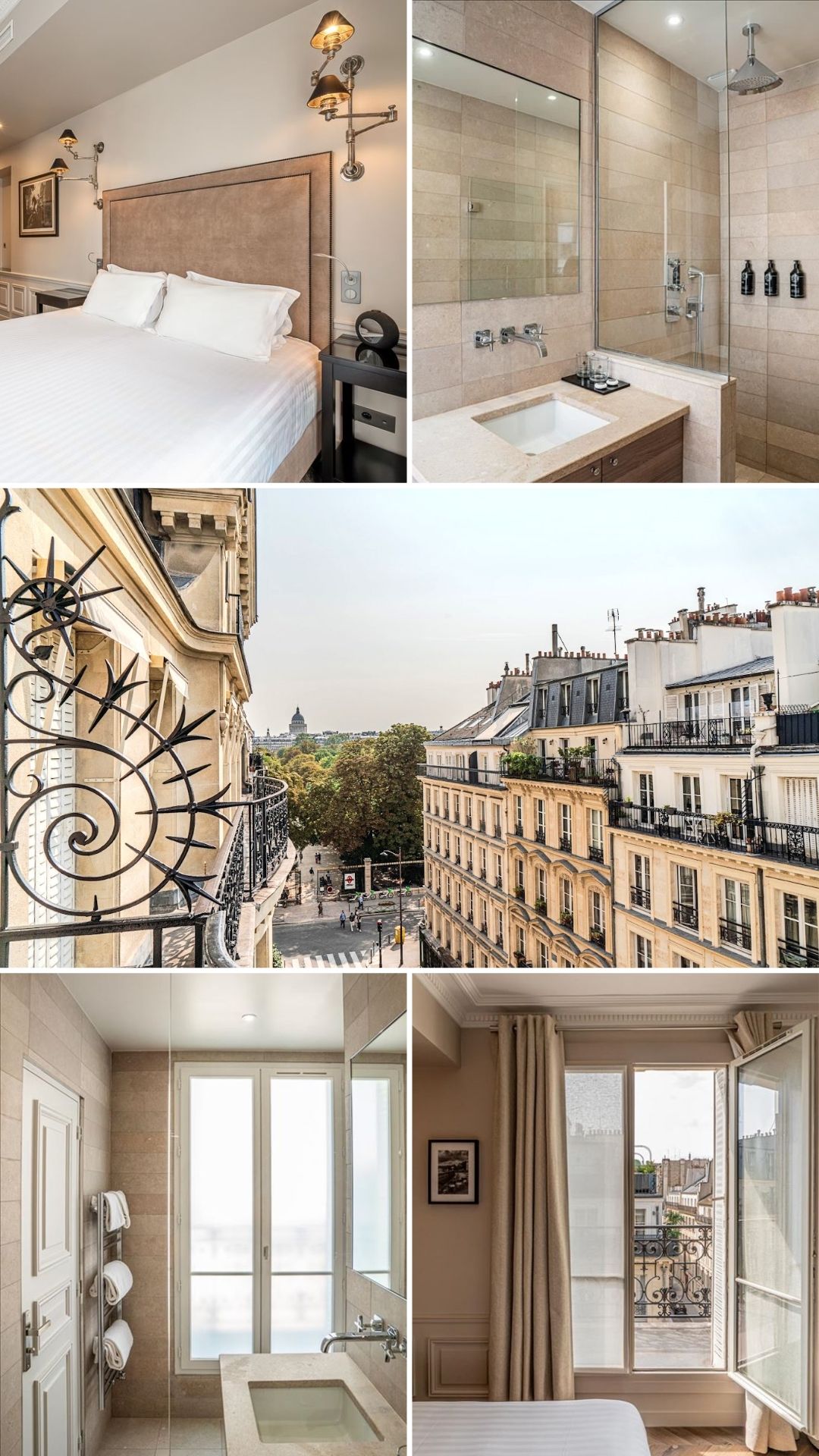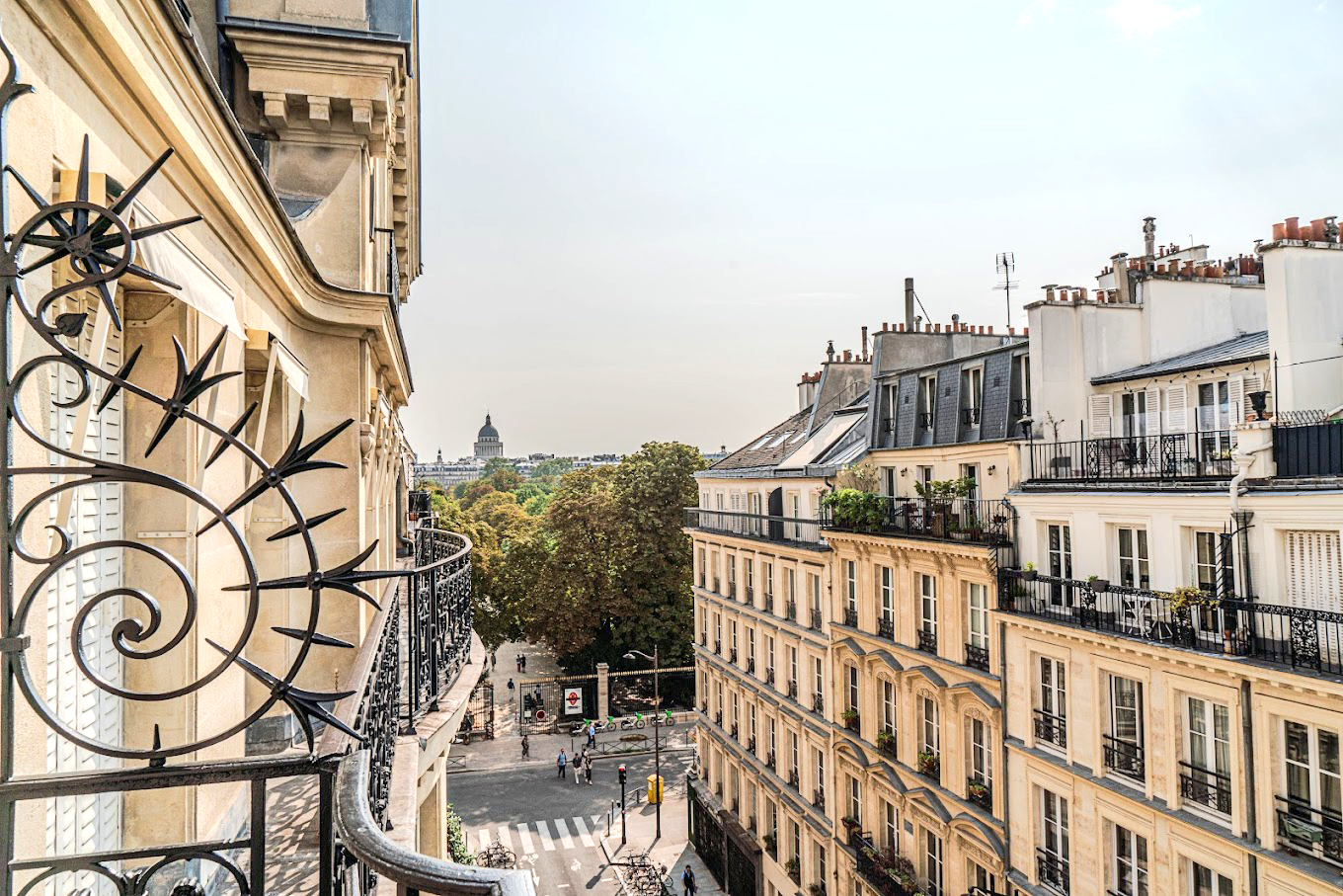 On adore tout particulièrement la Chambre Deluxe Balcon pour sa vue imprenable sur le Jardin du Luxembourg et le Panthéon, et son grand balcon donnant sur la rue Madame et la rue de Fleurus. Terriblement romantique !
