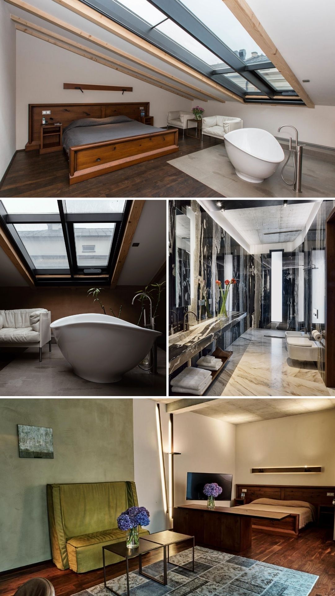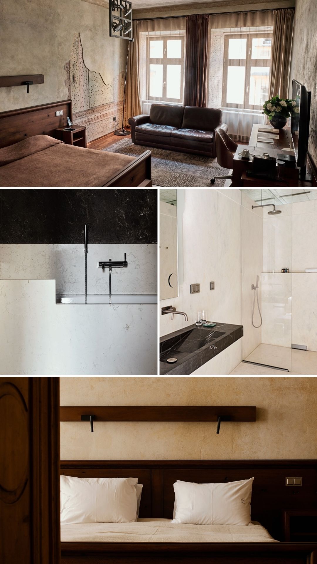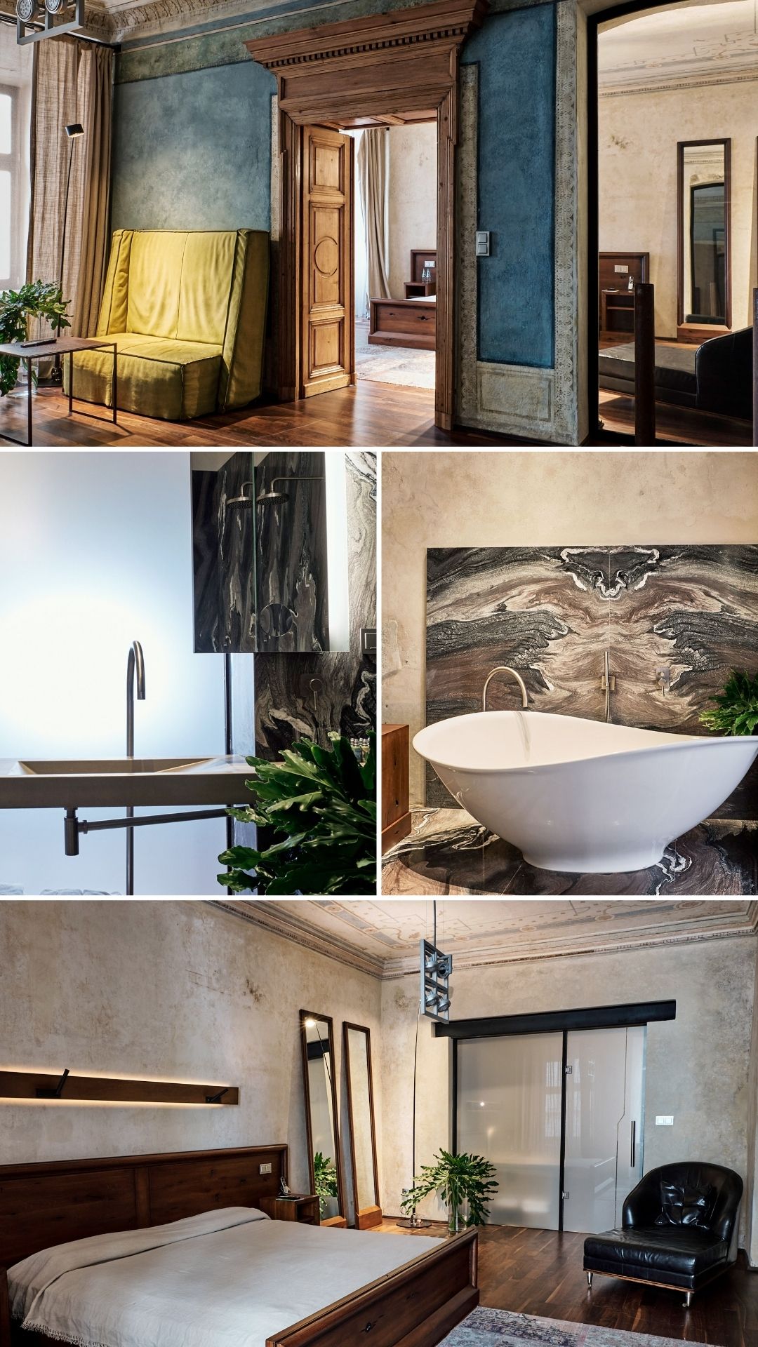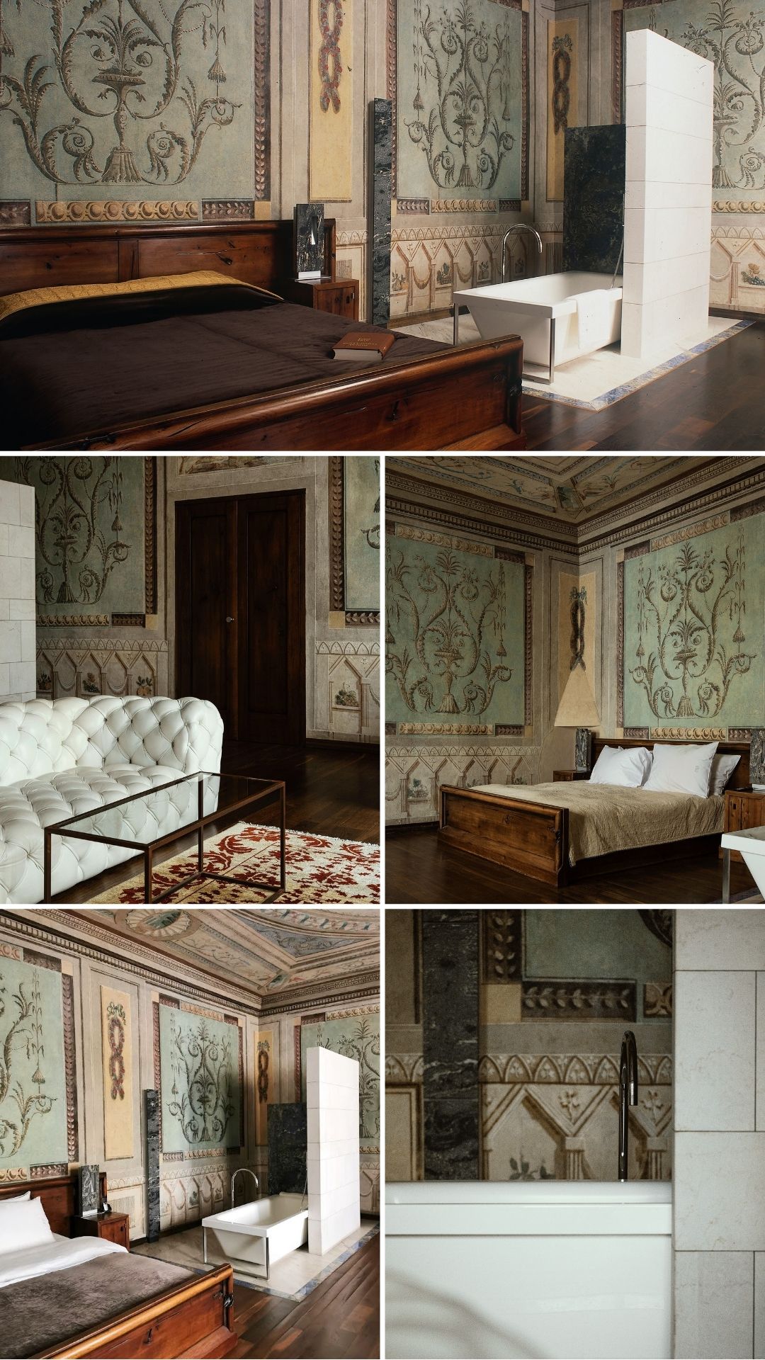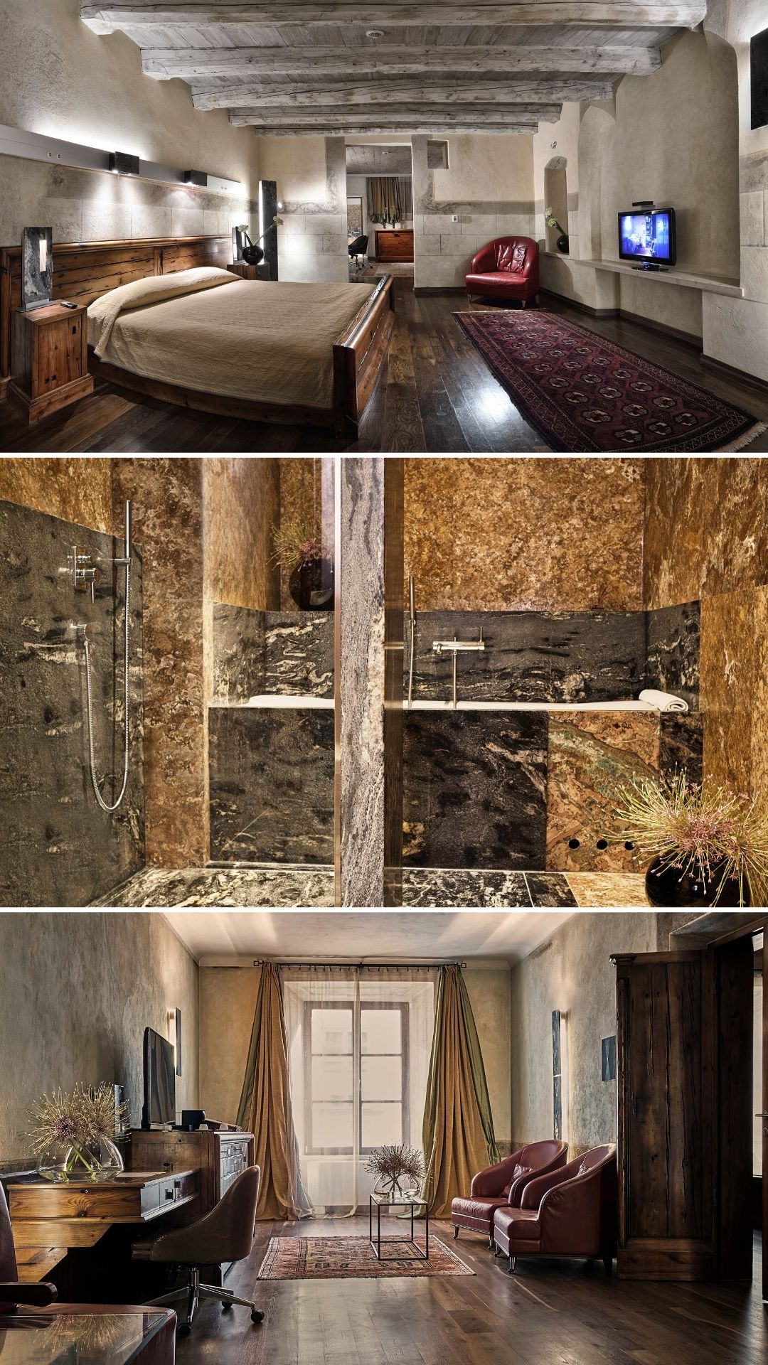 Toutes les chambres et suites sont spacieuses, luxueuses, et mêlent habilement fresques historiques, meubles antiques, hauts plafonds et murs en marbre.