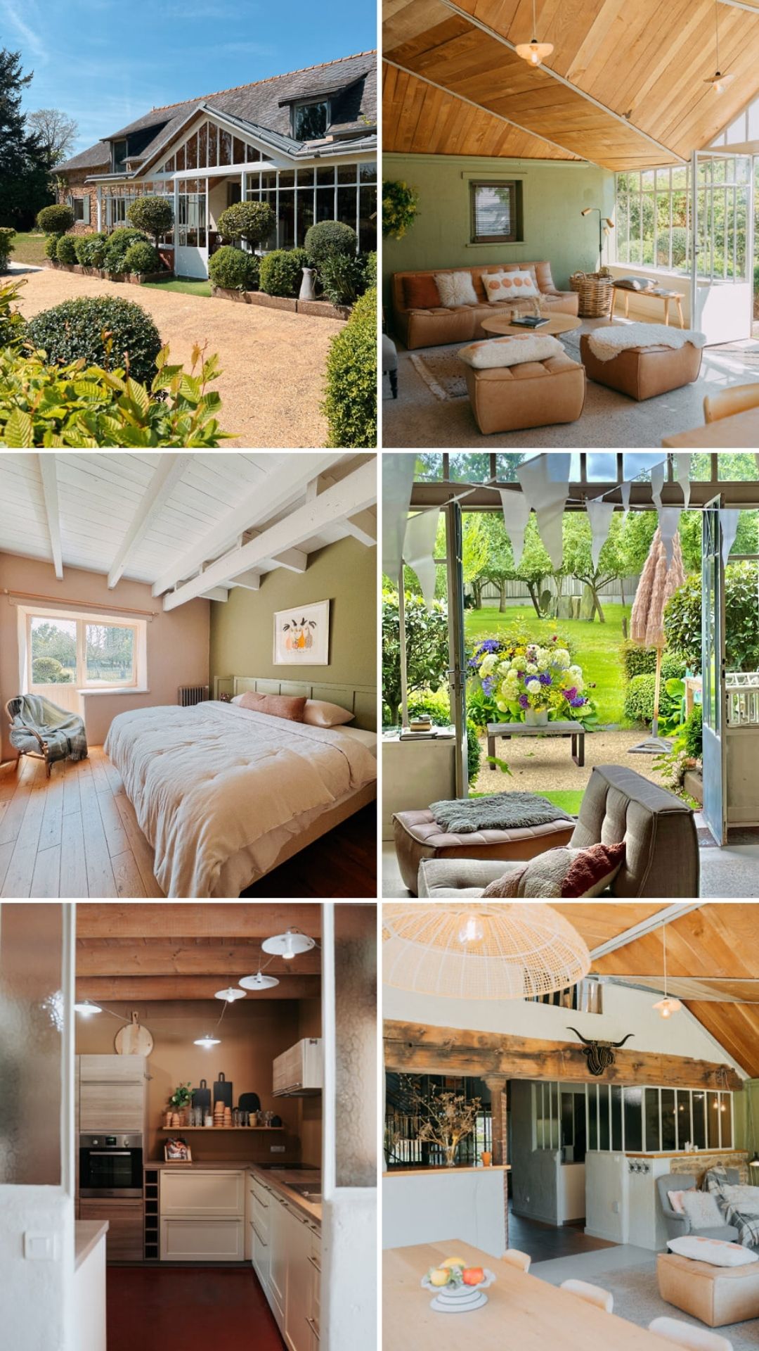 2 • La Grange d'Isidore • 90m² • Ancienne grange reconvertie en gîte de charme. On adore la serre de jardin intégrée dans la décoration, le très haut plafond et les grandes baies vitrées • Photo • ✨
