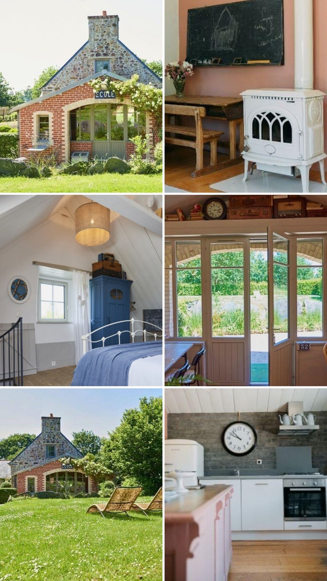 8 • La Maison de Jeanne • 70m² • La décoration insolite vous ramène sur les bancs de l’école de votre enfance pour un séjour plein de souvenirs. Sur le mur extérieur en brique rouge, la plaque en céramique donne le ton : l'école vous ouvre ses portes • Photo • 👩🏫