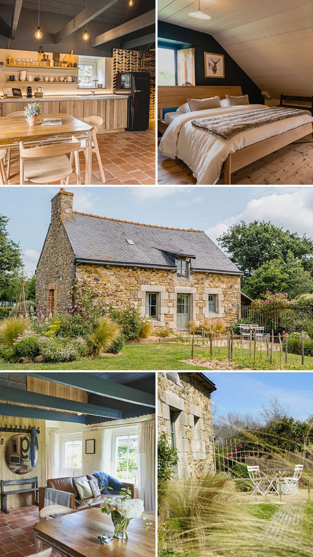 6 • La Maison de Rose • 70m² • Cette jolie petite maison en pierre vous promet un séjour en Bretagne champêtre et poétique, tout en douceur. Le bleu du plafond produit un effet à la fois théâtral et optimiste dans un espace sobrement décoré • Photo • 🌾