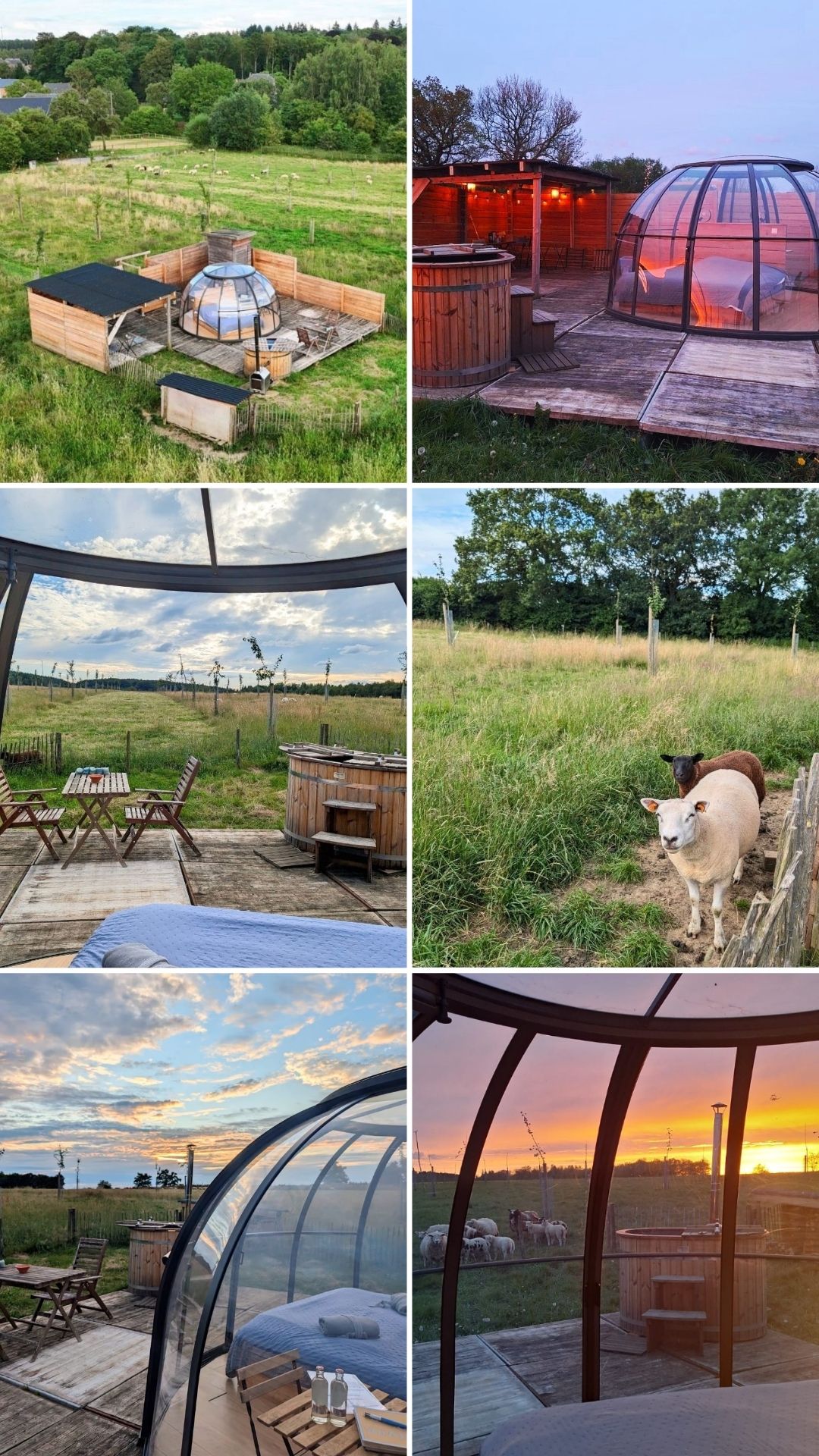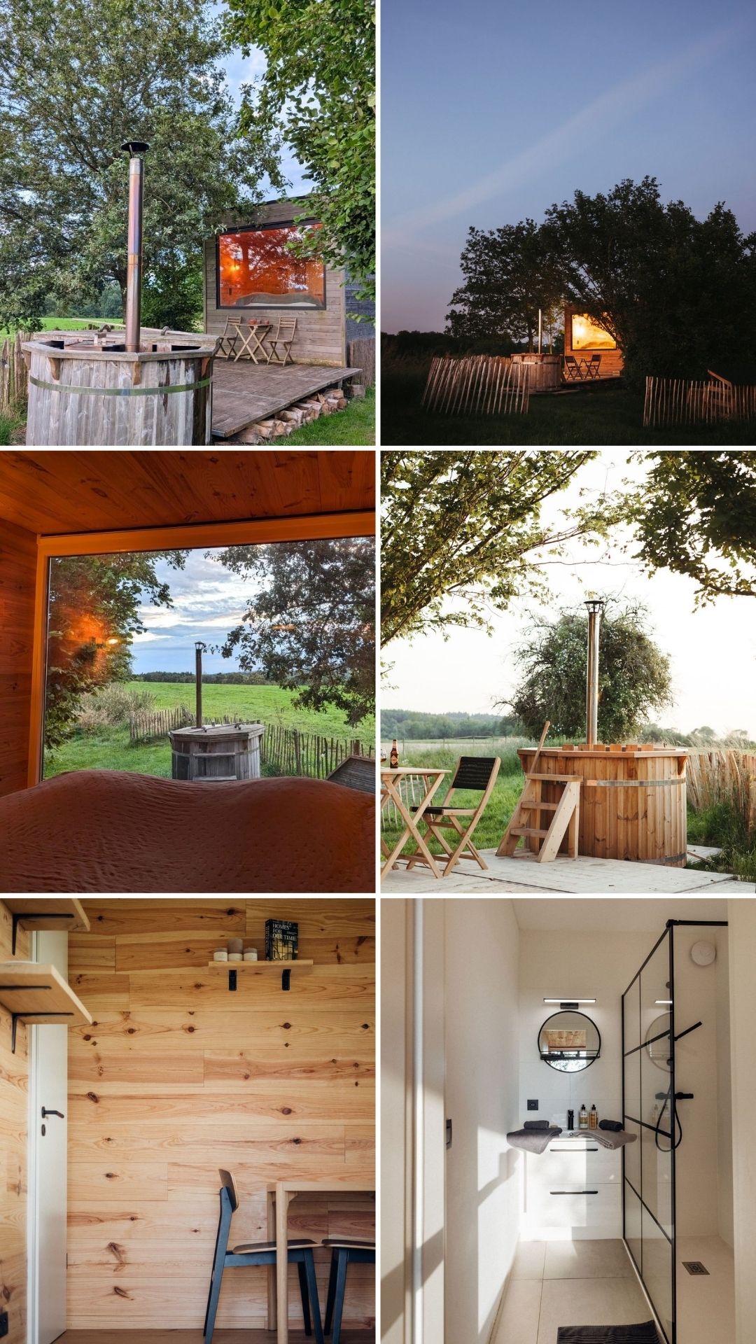 Selon le logement choisi, vous disposez des équipements suivants : lit king size ou grand lit double, literie confortable, douche, évier, toilette, peignoirs, serviettes, frigo, assiettes, verres, terrasse privée, bain nordique, brasero et table et chaise d'extérieur.