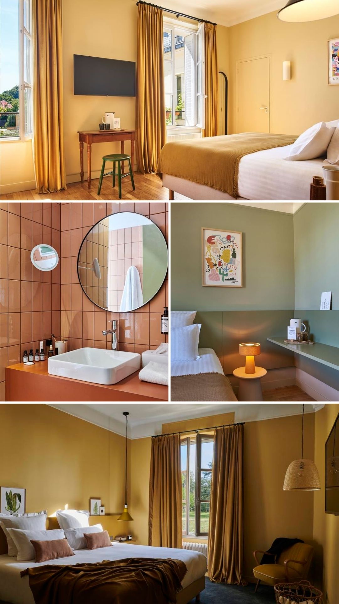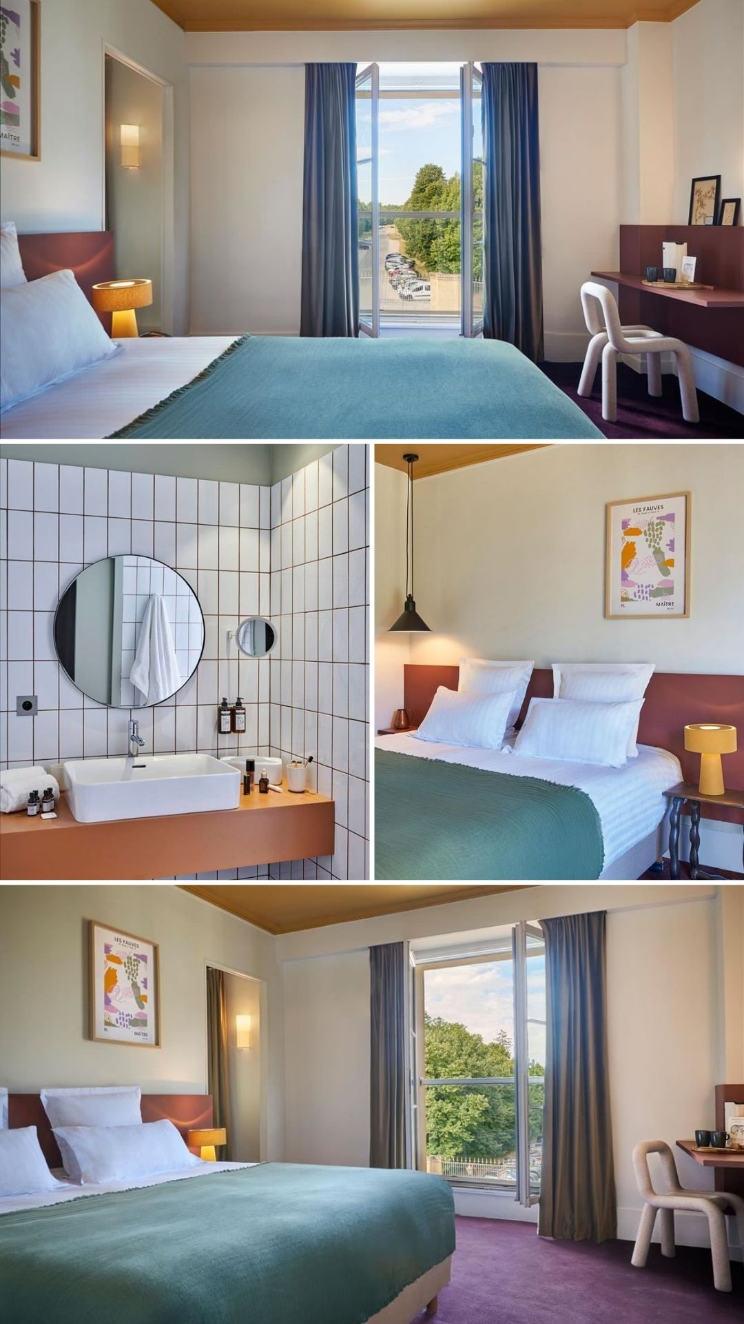 Il y a 49 chambres déclinées en 2 versions : les chambres de catégorie Tradition aux teintes douces (sable ou forêt par exemple) et les chambres de catégorie Évasion plus spacieuses et cultivant l'esprit maison de famille. On a hérité de la chambre 207 durant notre séjour. Très jolie et spacieuse avec vue sur le parc à l'arrière.