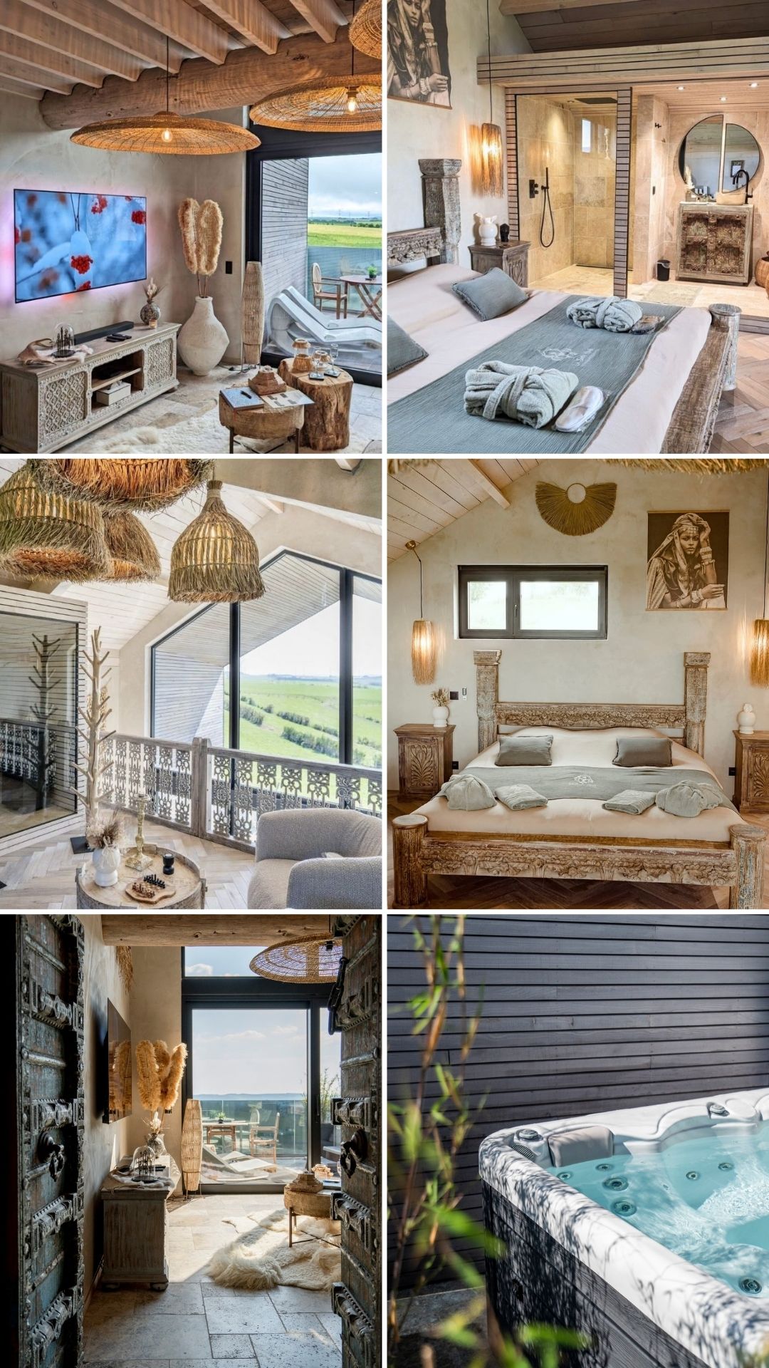 8 suites privatives de luxe avec piscine grotte, sauna, hammam et feu ouvert