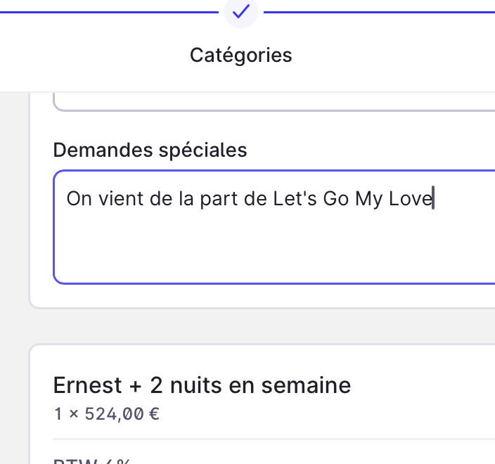 Vous pouvez aussi mentionner Let's Go My Love par téléphone ou mail, sans souci ! Les réservations se font via le site officiel, par téléphone au +32 61 28 90 27 ou bien par email tous les jours à partir de 9h du matin.