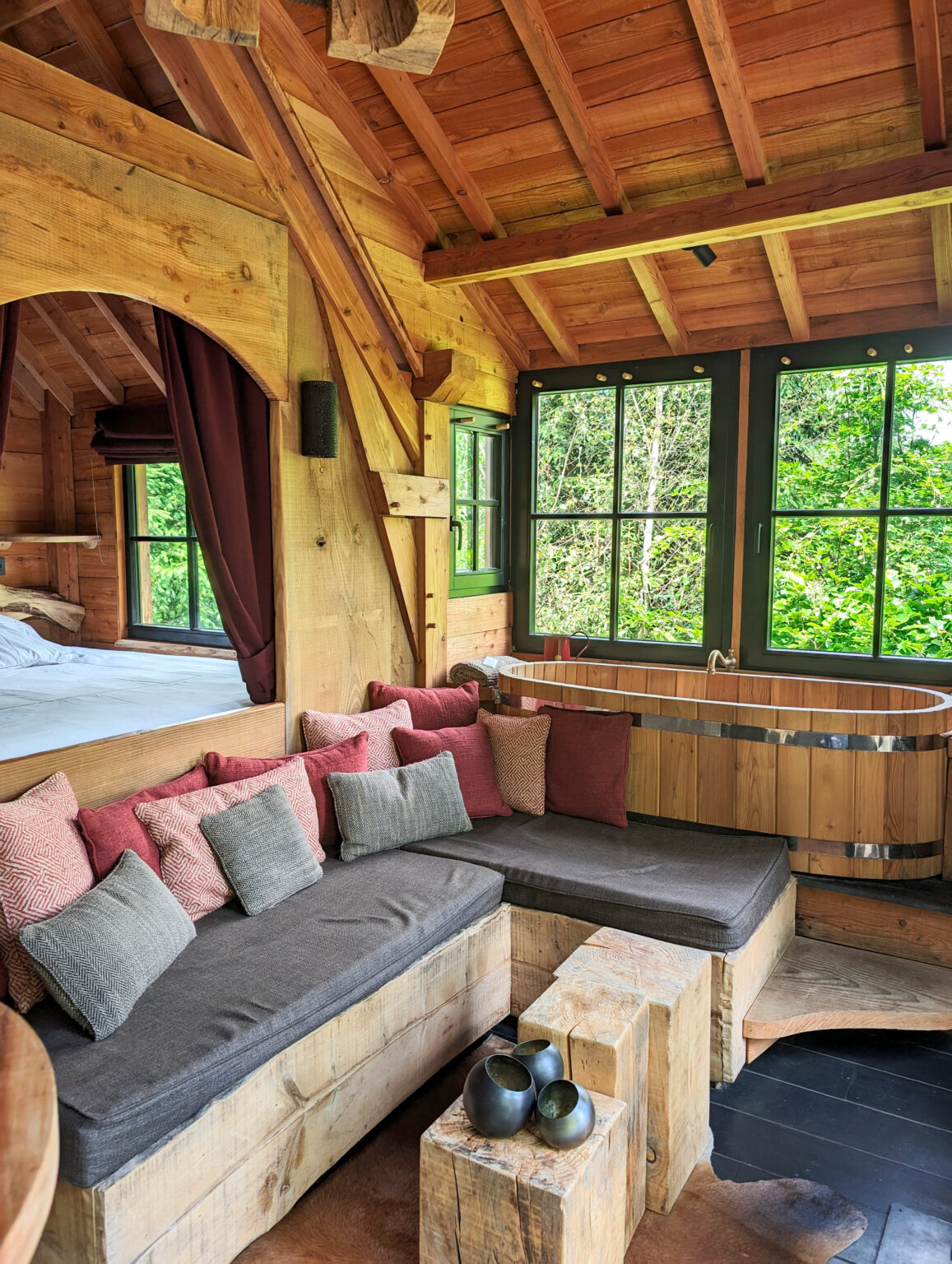 Oui, certaines cabanes proposent un bain nordique ou bien un sauna privatif. Vous bénéficiez également parfois d'une baignoire dans la chambre ou sur la terrasse.