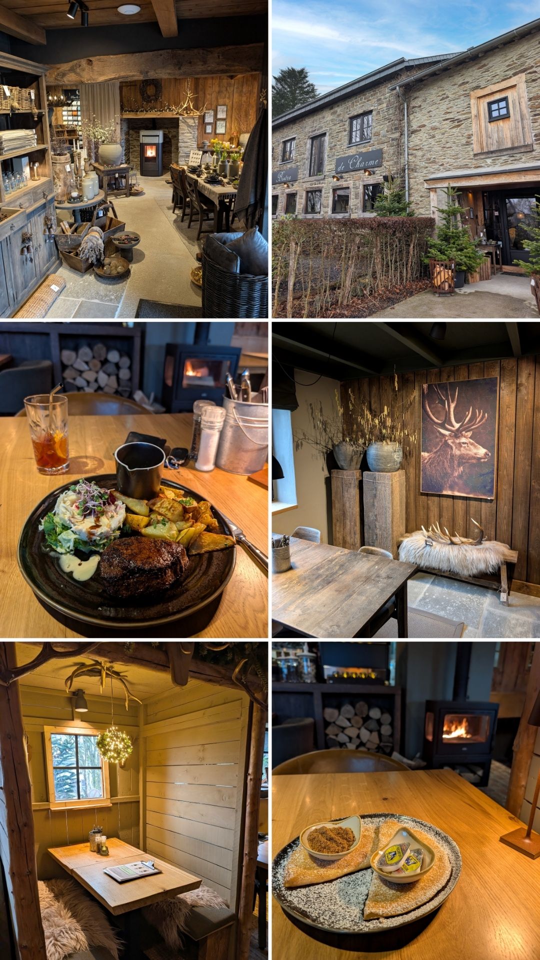 Si vous cherchez un restaurant rustique tout près, il y a le Charme de Wibrin pas très loin. Il est dans notre top 5 dans toute la Belgique. Un vrai chalet de montagne, très chaleureux l'hiver et une jolie terrasse au calme. Cuisine savoureuse et... Ne manquez pas les crêpes !