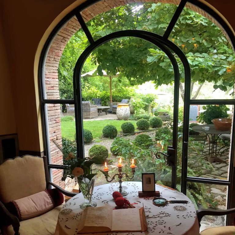 À l’intérieur, on découvre de grands espaces voûtés, un piano quart de queue et une cuisine ouverte où le chef prépare le dîner du soir. Les matériaux sont de grande qualité : patines à la chaux, terres cuites, marbres espagnols et italiens et boiseries anciennes.