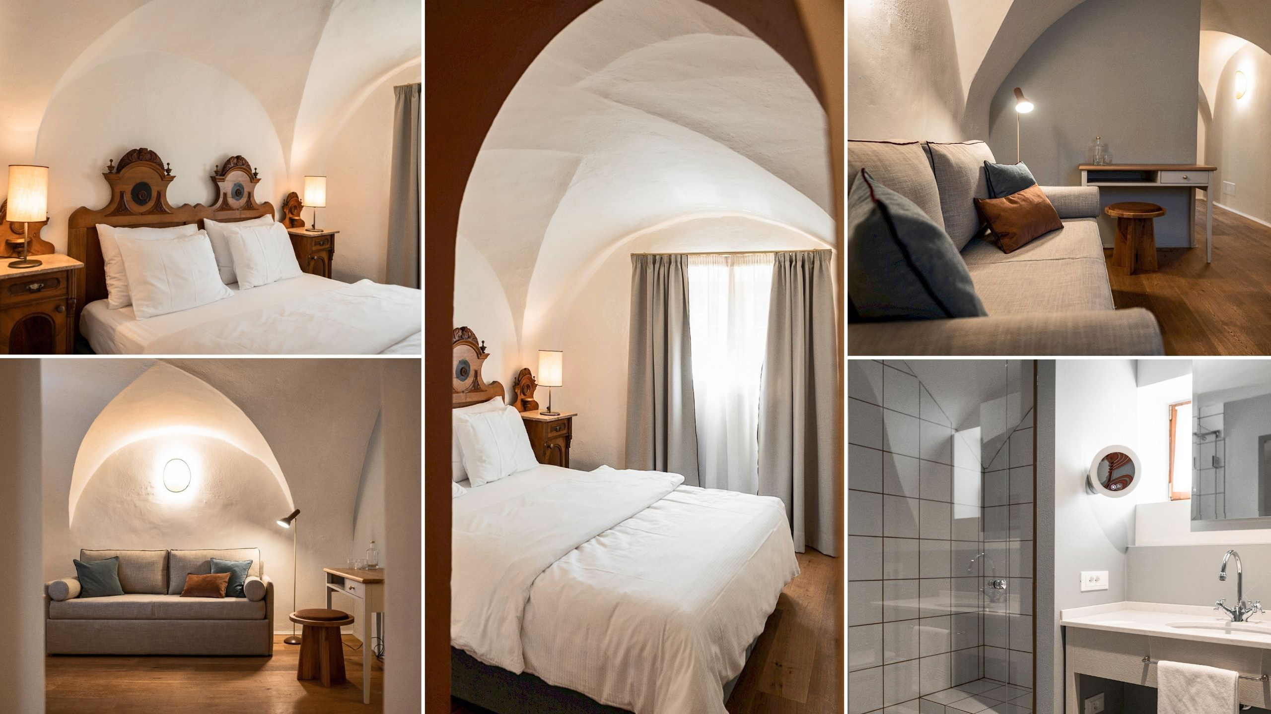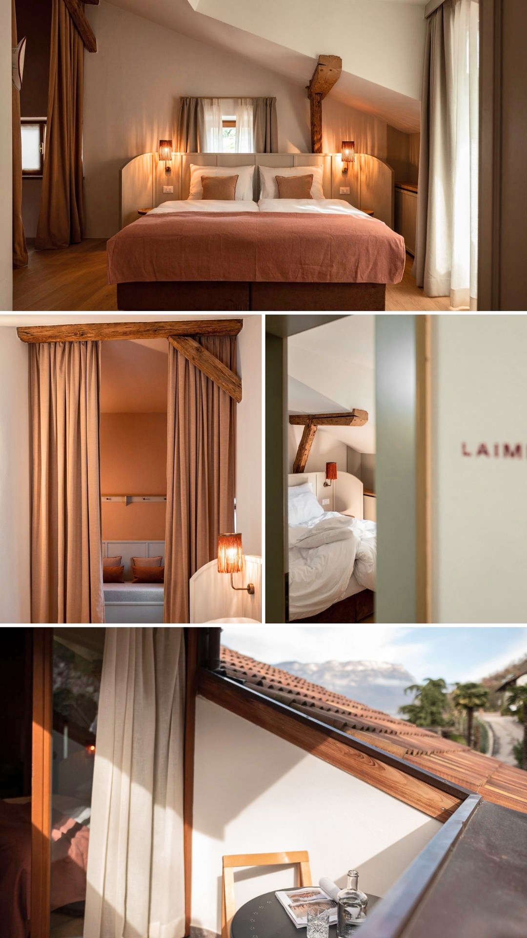 Selon la chambre choisie, vous disposez des équipements suivants : très grand lit double, vue sur le lac Kaltern, poutres en bois, loggia face au lac, plafond voûté, salle de bain avec douche, baignoire îlot, sèche-cheveux, coin salon, climatisation, coffre-fort et wifi.