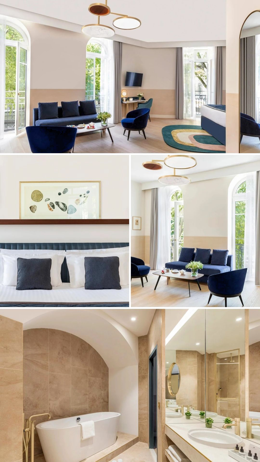 L'hôtel compte 54 chambres et suites de 20 à 65 m² et 7 maisons privées de 100 à 165 m². Le style art déco est doux, raffiné et très inspiré. L'insonorisation est parfaite : tout l'hôtel est construit autour d'une grande cour intérieure très calme.
