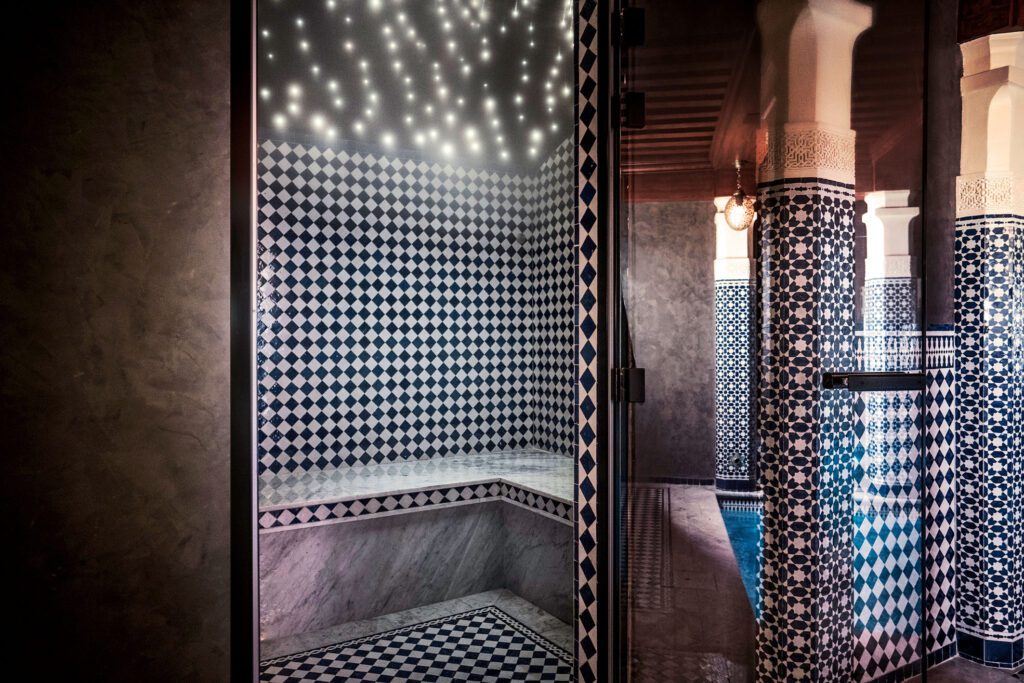 Vous êtes dans un décor envoûtant aux tons gris-bleus avec lanternes à l'éclairage subtil, marbre au sol, senteurs exquises, murmure d'une fontaine et grandes colonnes habillées de zelliges autour de la piscine. Toute réservation inclut un accès privatif au spa qui inclut piscine, hammam et espace de soins. N'oubliez pas de préciser vos disponibilités à la réception lorsque vous faites votre check-in.