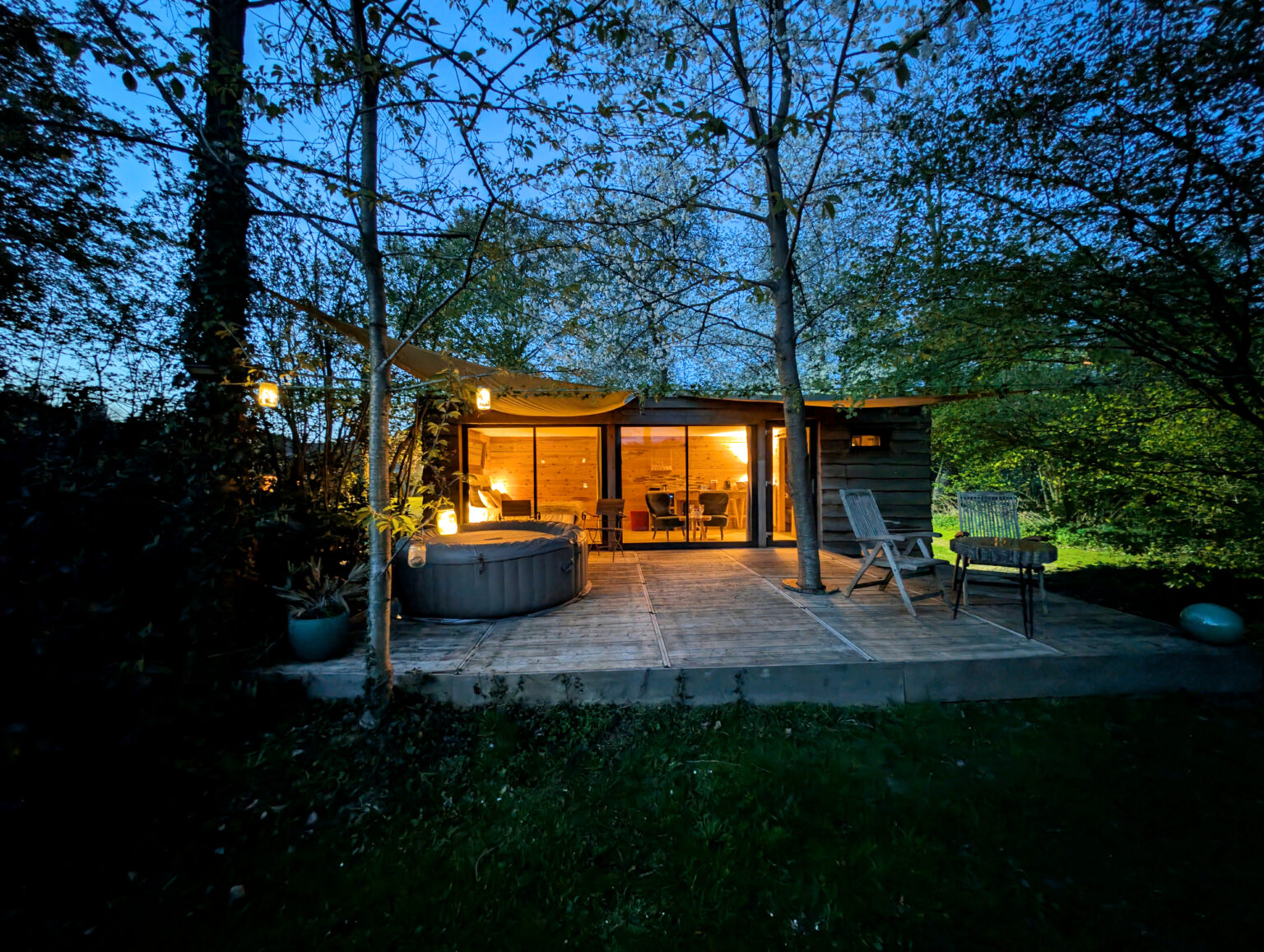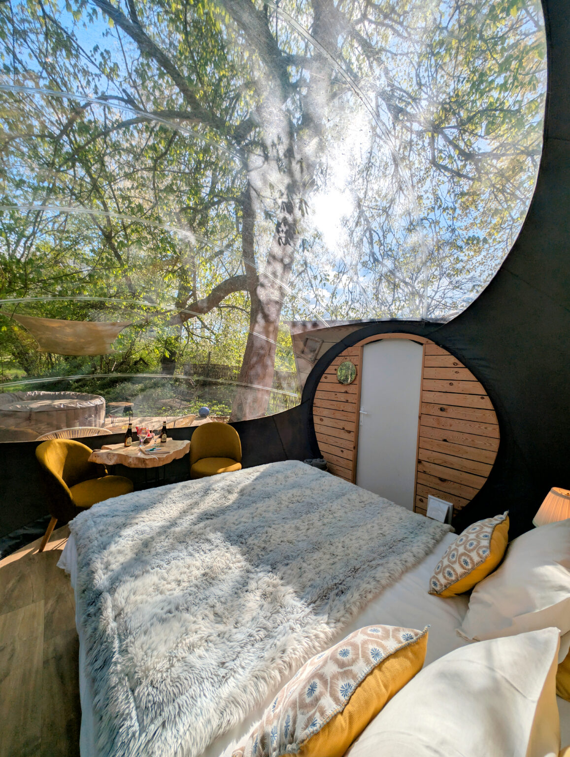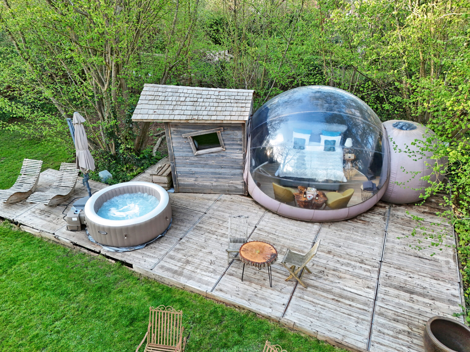 Tous les hébergements possèdent un jacuzzi privatif utilisable toute l'année et sans supplément. Celui-ci est chauffé 37,2° toute au long de la journée et jusqu'au soir.