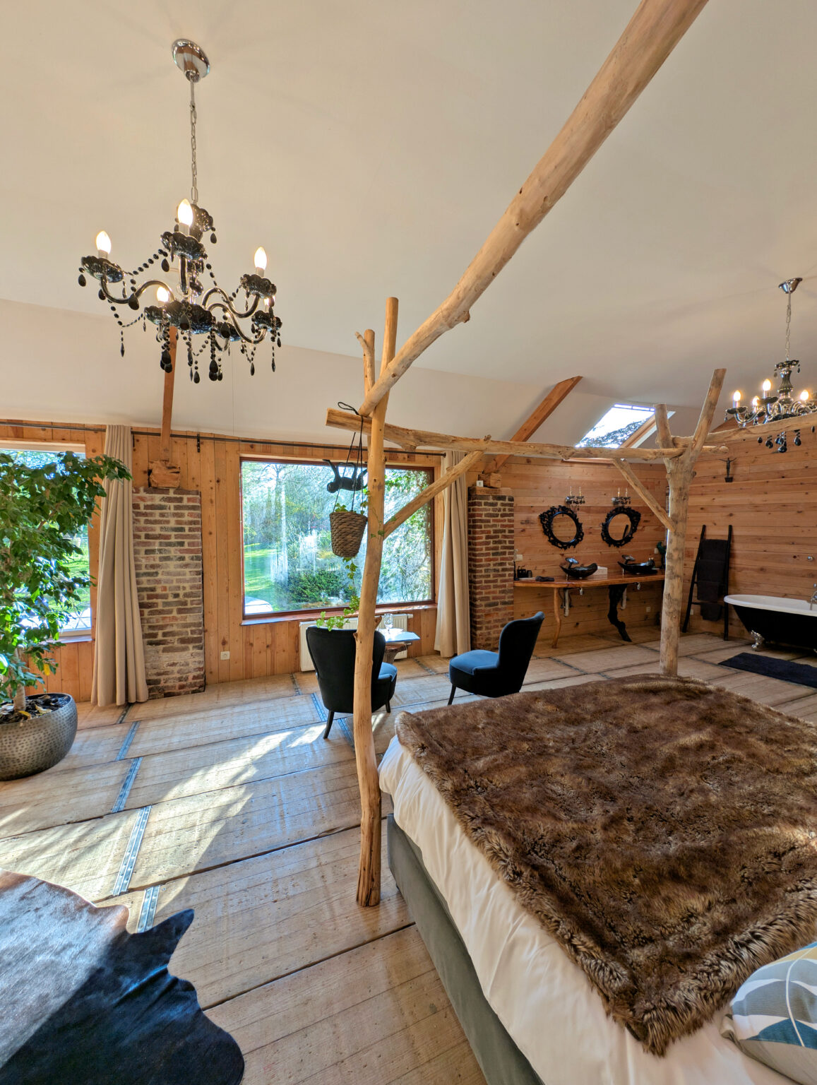 La Cabane du Moulin est la seule chambre à proposer une baignoire à pied. Authentique, elle ajoute ce petit quelque chose magique à votre séjour.