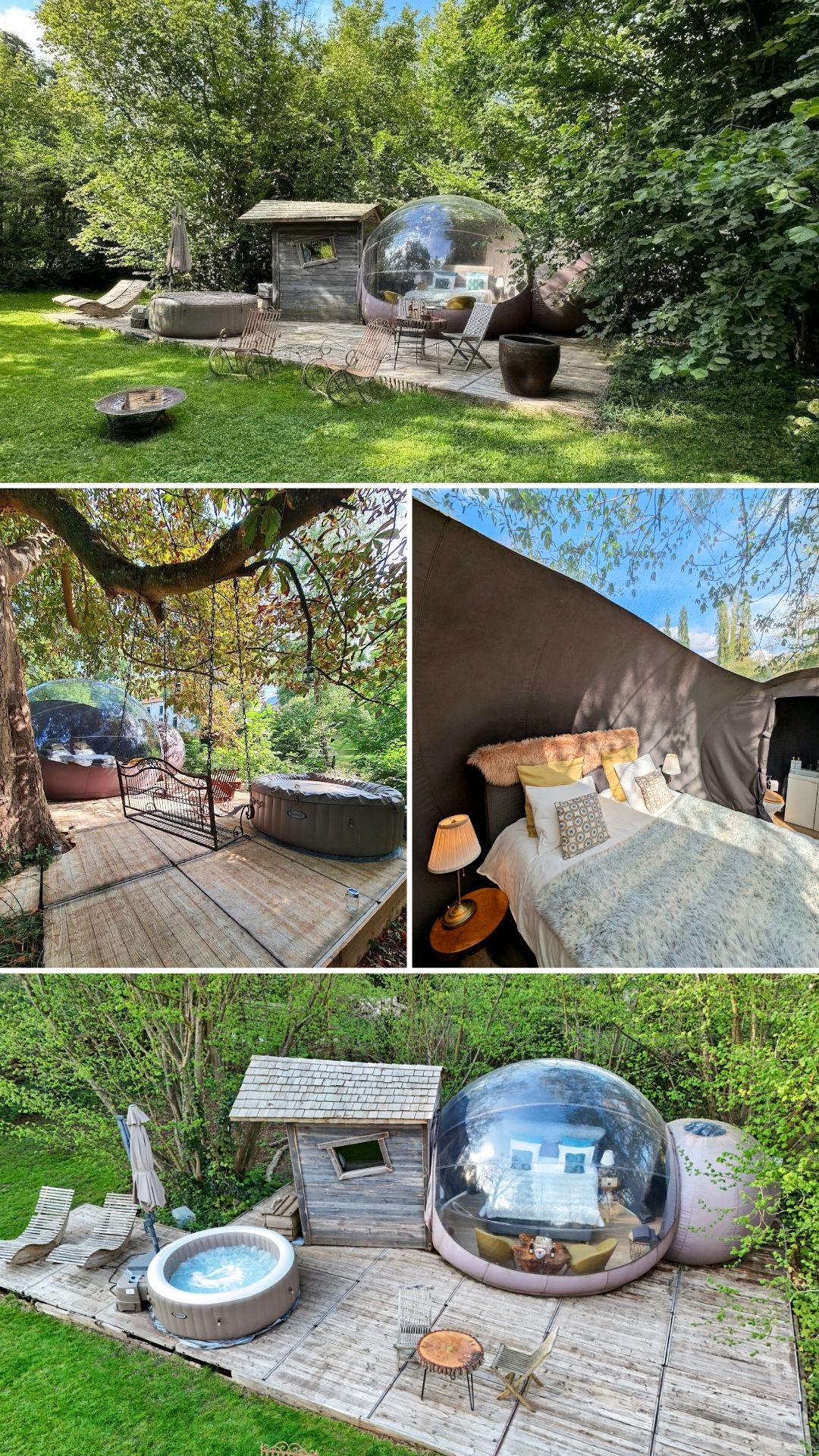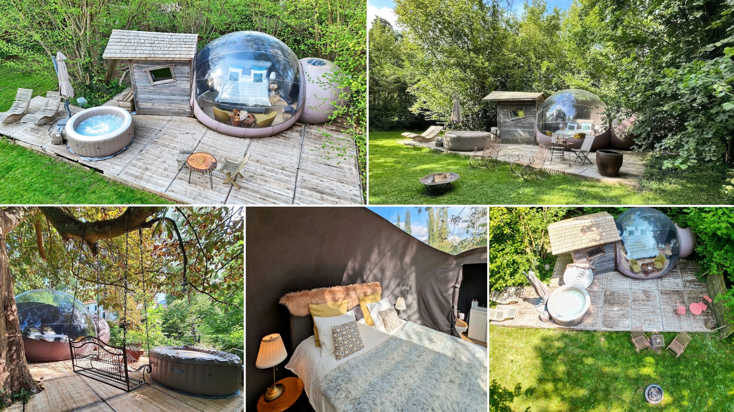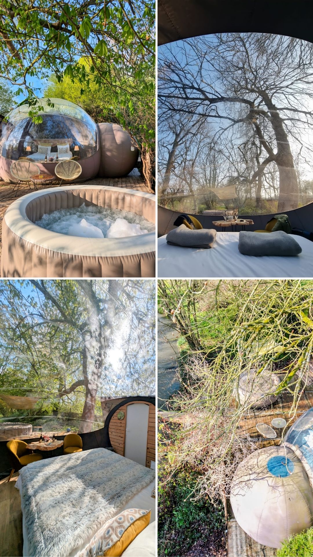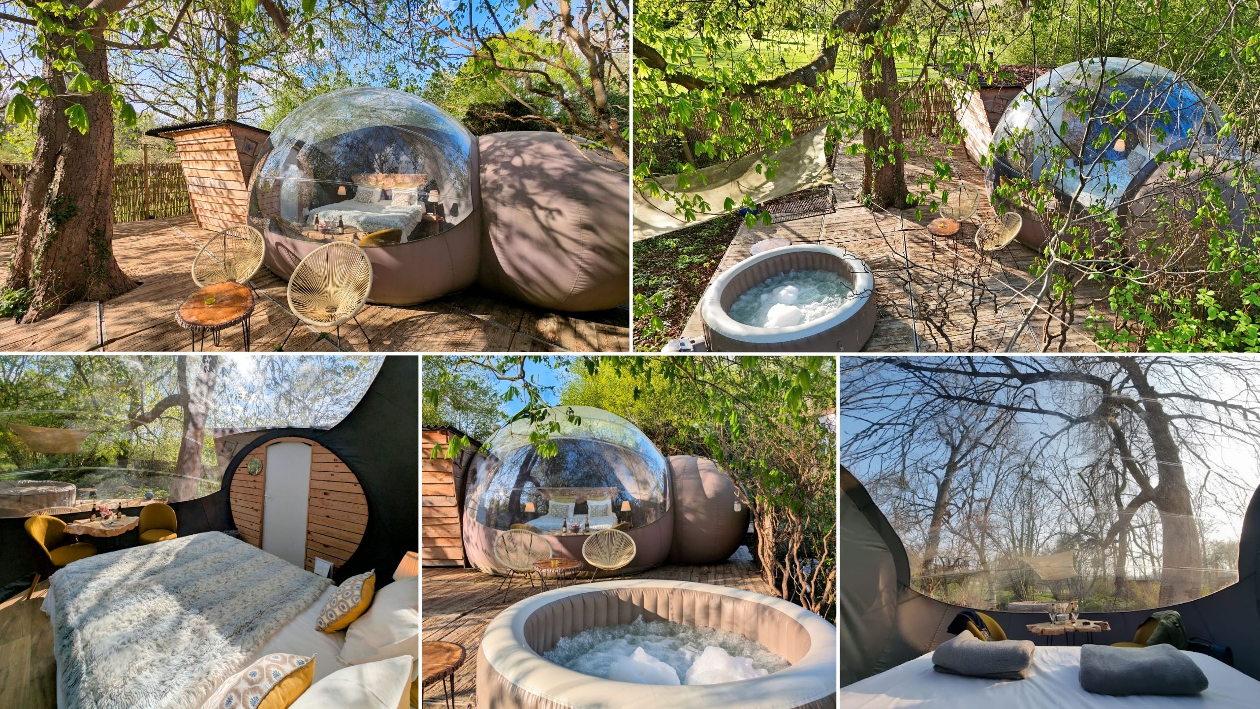 Vous ne savez pas lequel choisir ? La différence entre les cabanes et les bulles est que la Cabane du Pêcheur et la Cabane du Moulin proposent une salle de bain privée et une petite cuisine. Mais la Bulle d'Eau et Pré en Bulle ont l'avantage de vous offrir un splendide panorama sur la nature environnante. Et d'être un peu moins chères. Les 4 logements proposent l'eau courante et l’électricité mais n'ont pas le wifi.