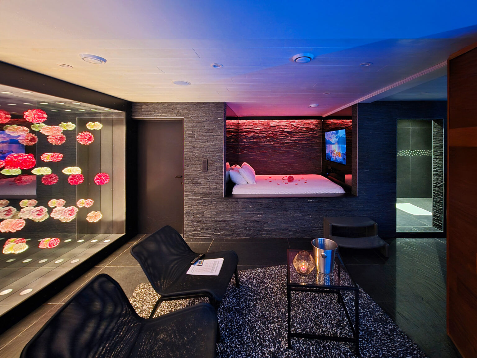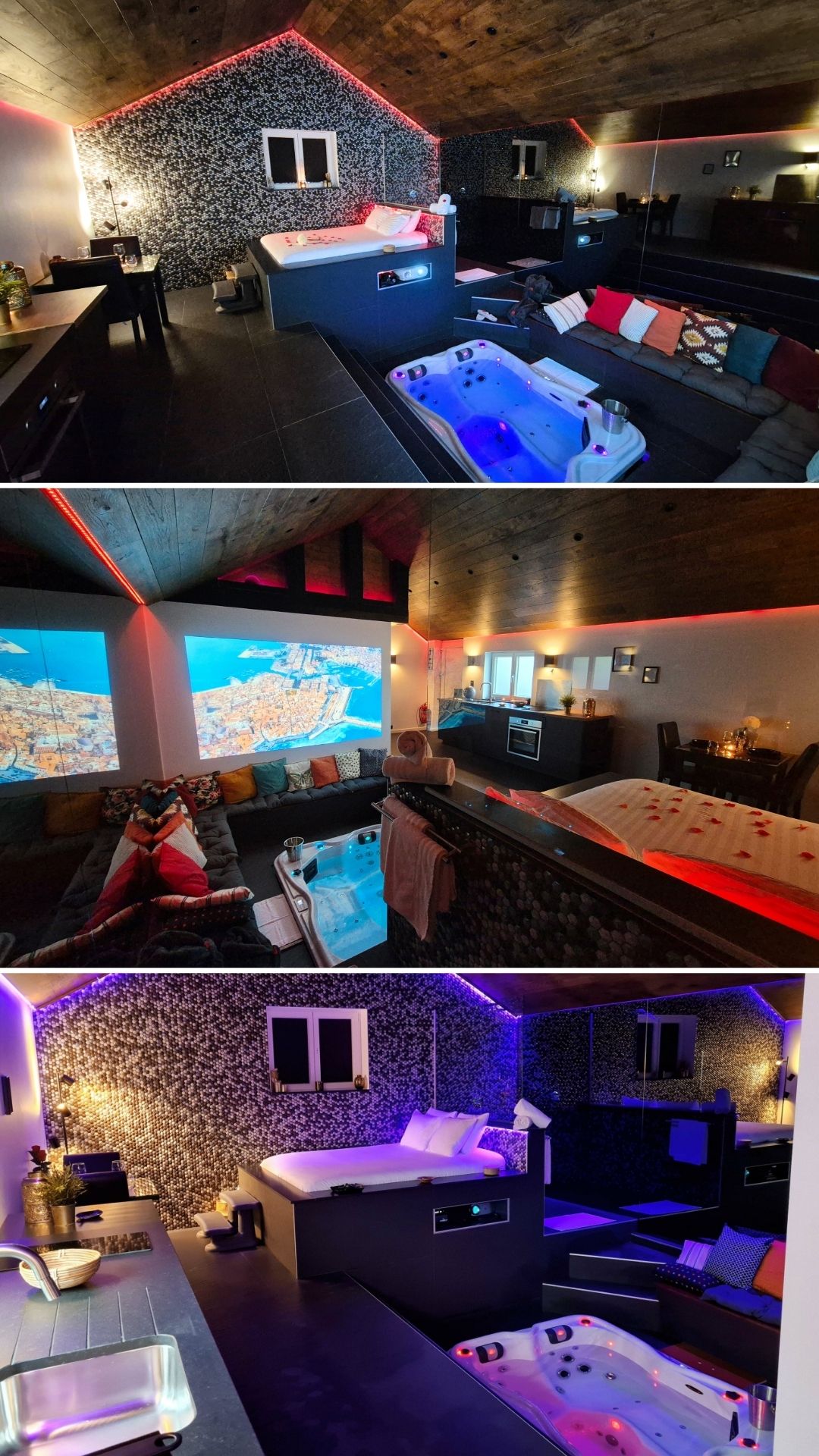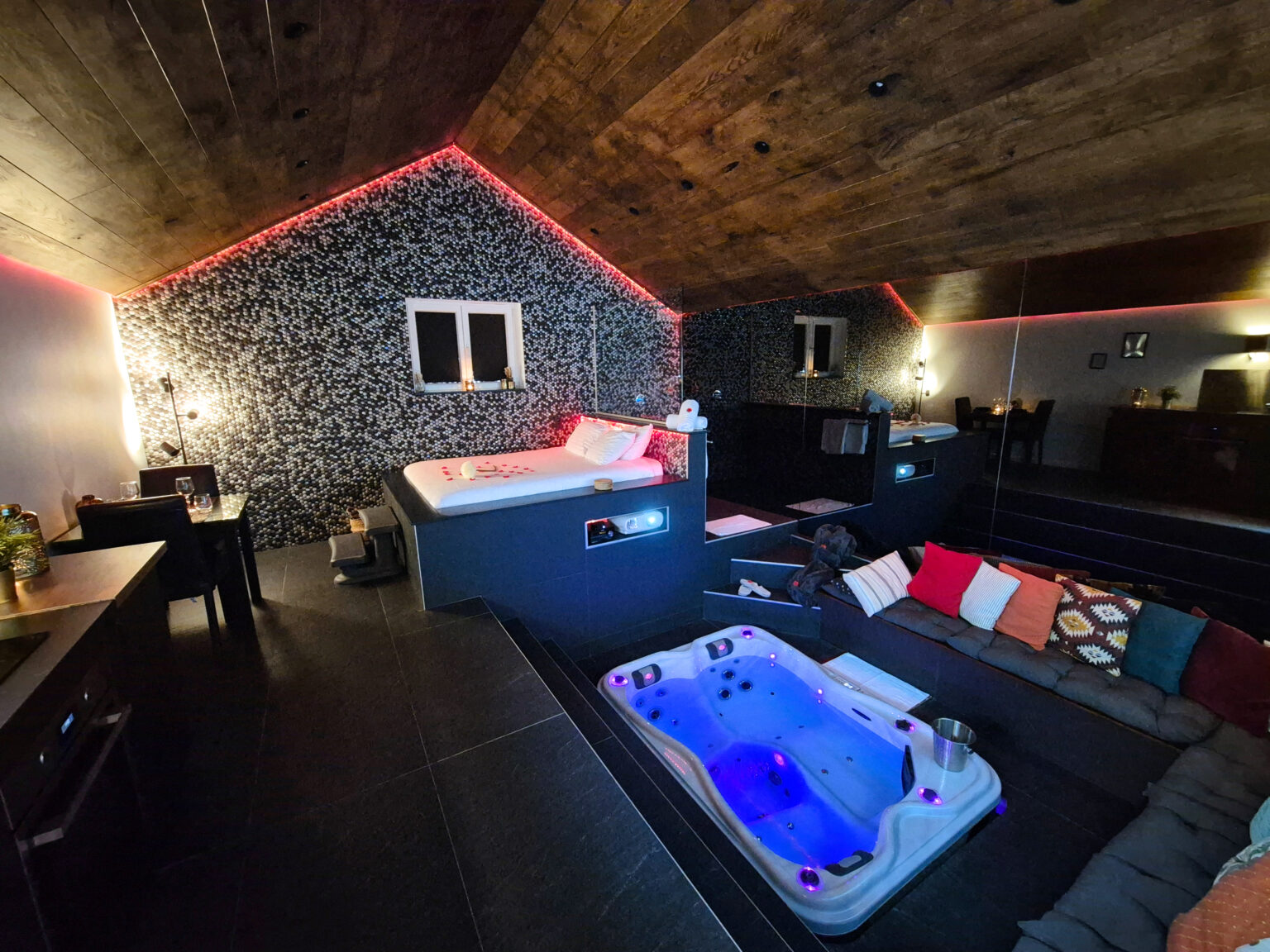 Il y a 3 suites. La Forest chalet en brique avec jacuzzi couvert extérieur. La Infiny est un loft avec une superbe piscine privée chauffée à l'intérieur. Enfin, la Solè est une suite romantique avec jacuzzi.