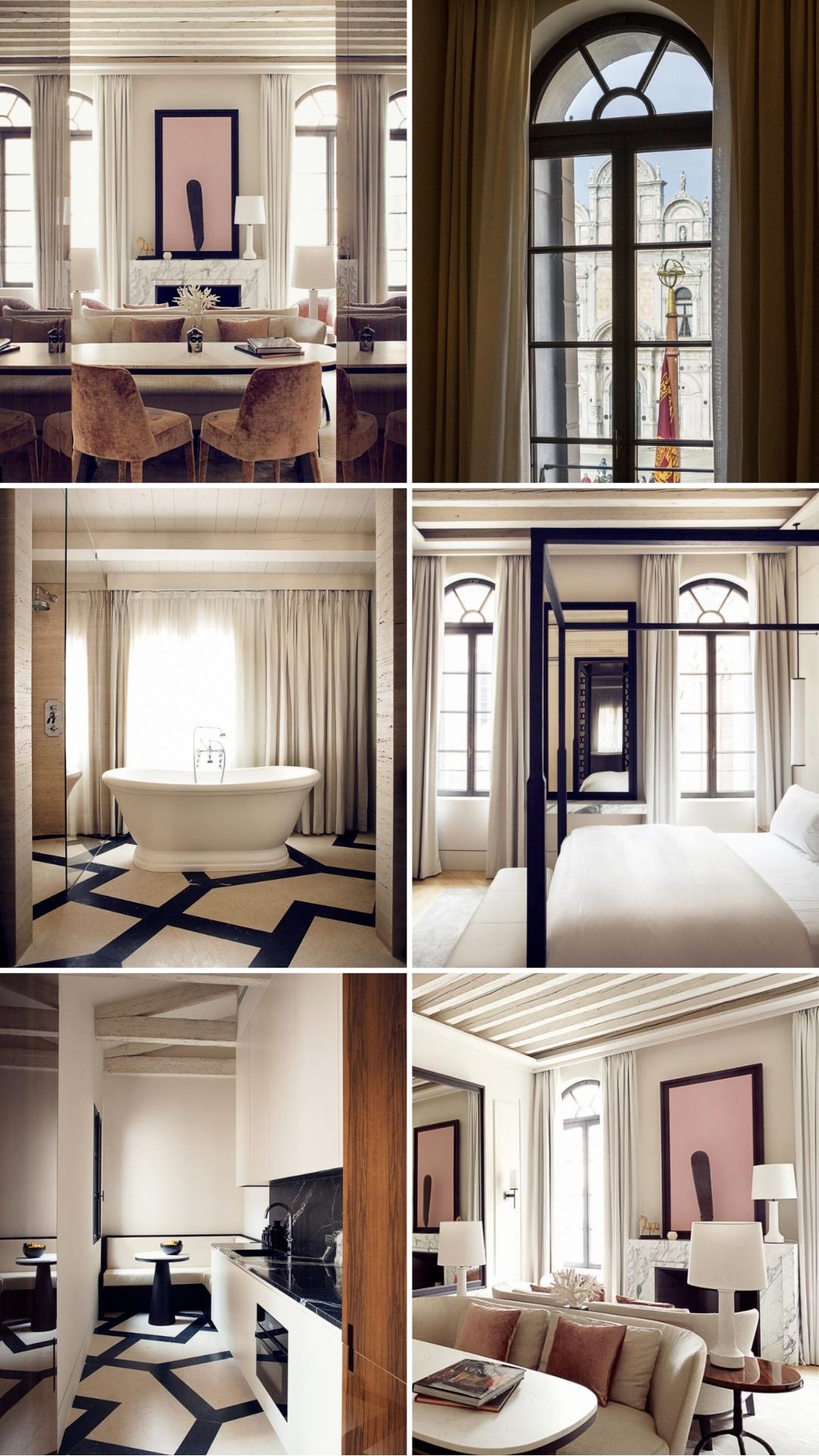 2 • Il y a ensuite la Suite III, au 2ème étage. Majestueux appartement de 90m² avec chambre à coucher, salle de bain privative, cuisine utra-moderne et un salon offrant une vue magnifique sur la Scuola Grande di San Smarco (un musée) et la basilique Santi Giovanni e Paolo. La baignoire abrite une baignoire autonome de chez Devon & Devon, fabriquée en composite de marbre avec une finition soyeuse et douce comme du beurre. • Photo • ⛪️