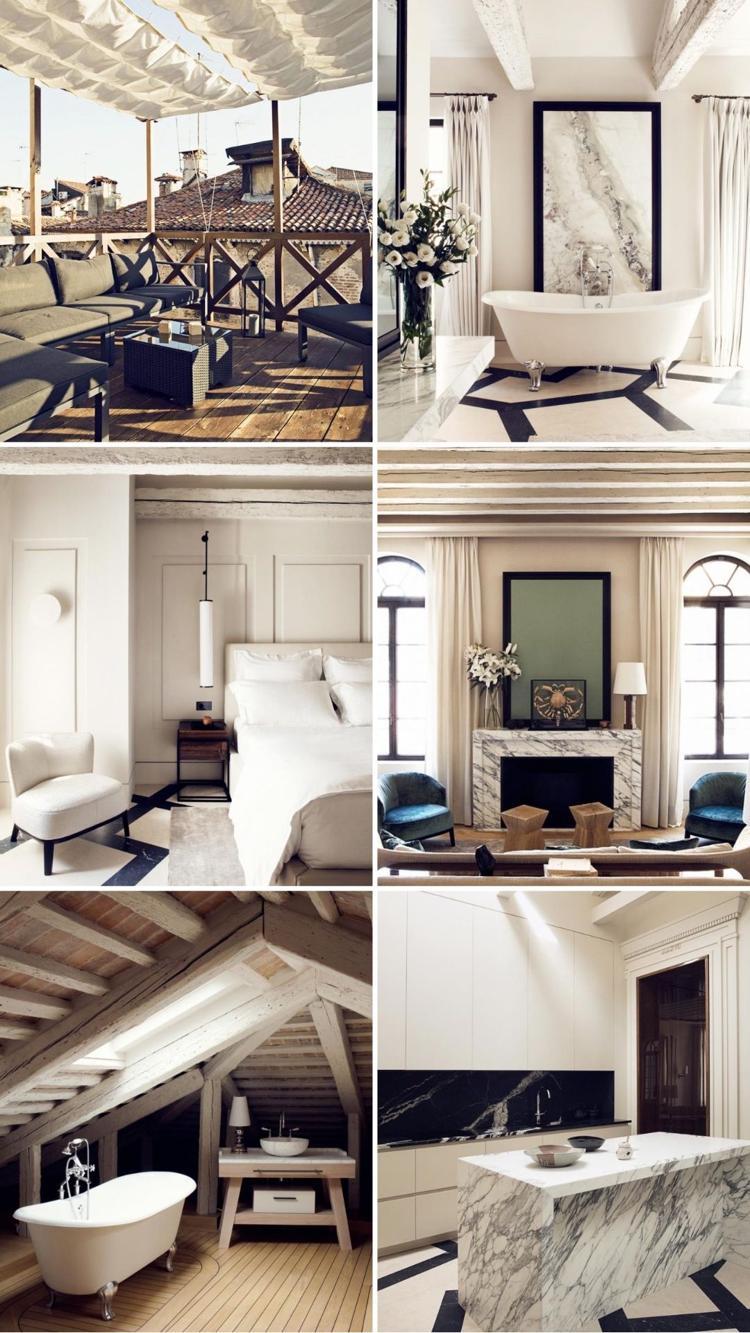 3 • Et il y a enfin la Suite IV, toujours au 2ème étage. Spectaculaire duplex de 150m² avec toit-terrasse. L'appartement abrite une chambre double, 2 salles de bain, une cuisine ultra-moderne et salon offrant également une vue magnifique sur la Scuola Grande di San Smarco et la basilique Santi Giovanni e Paolo. • Photo • ✨