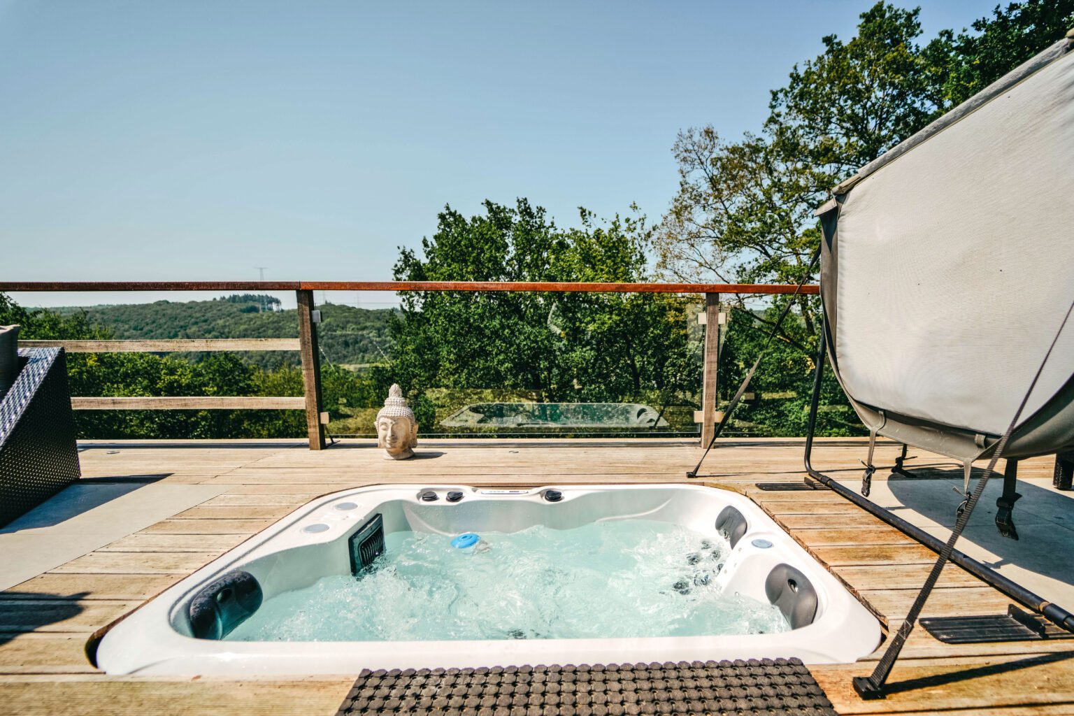 À l'extérieur, le jacuzzi trône sur la terrasse et n'attend que vous. Vous pouvez en profiter quelle que soit la température extérieure (et quelle que soit la saison) puisque celui-ci est toujours chauffé et prêt à l'emploi ! La vue depuis le jacuzzi est grandiose, surtout au coucher du soleil.